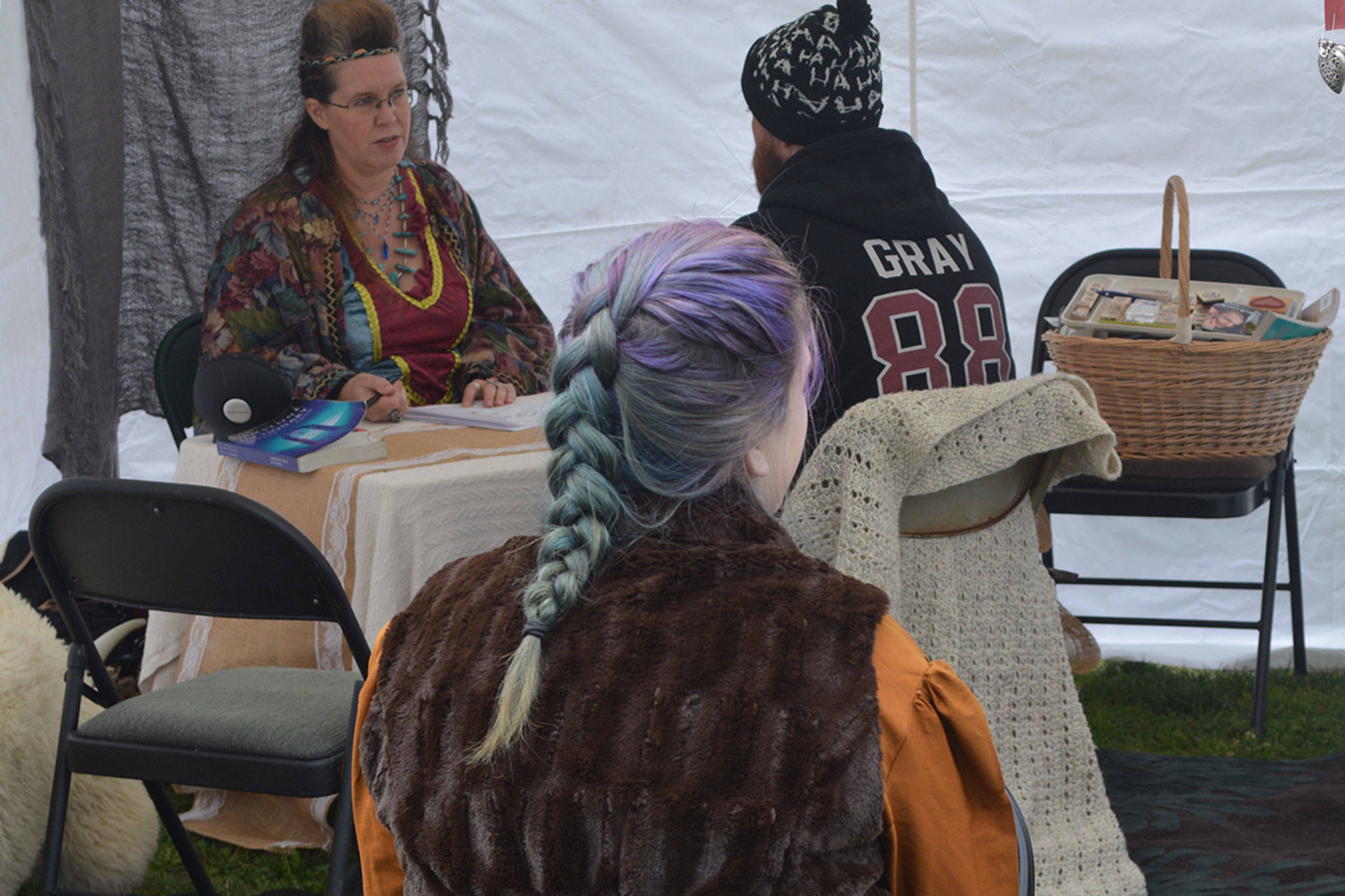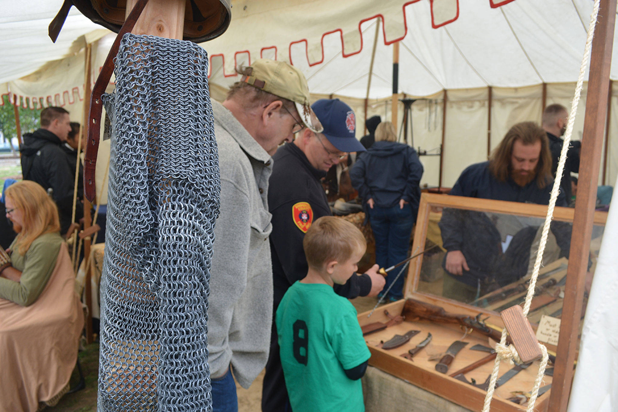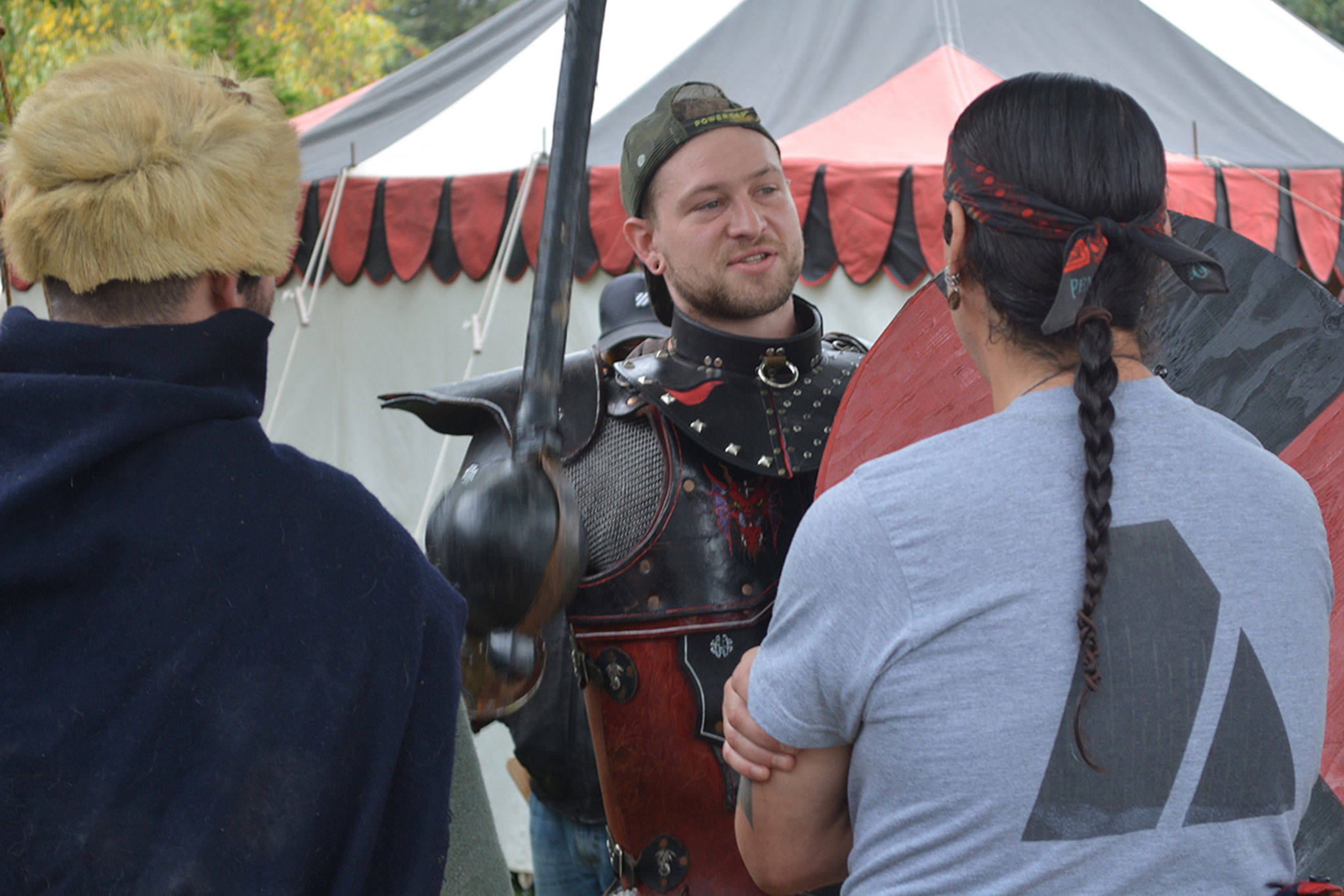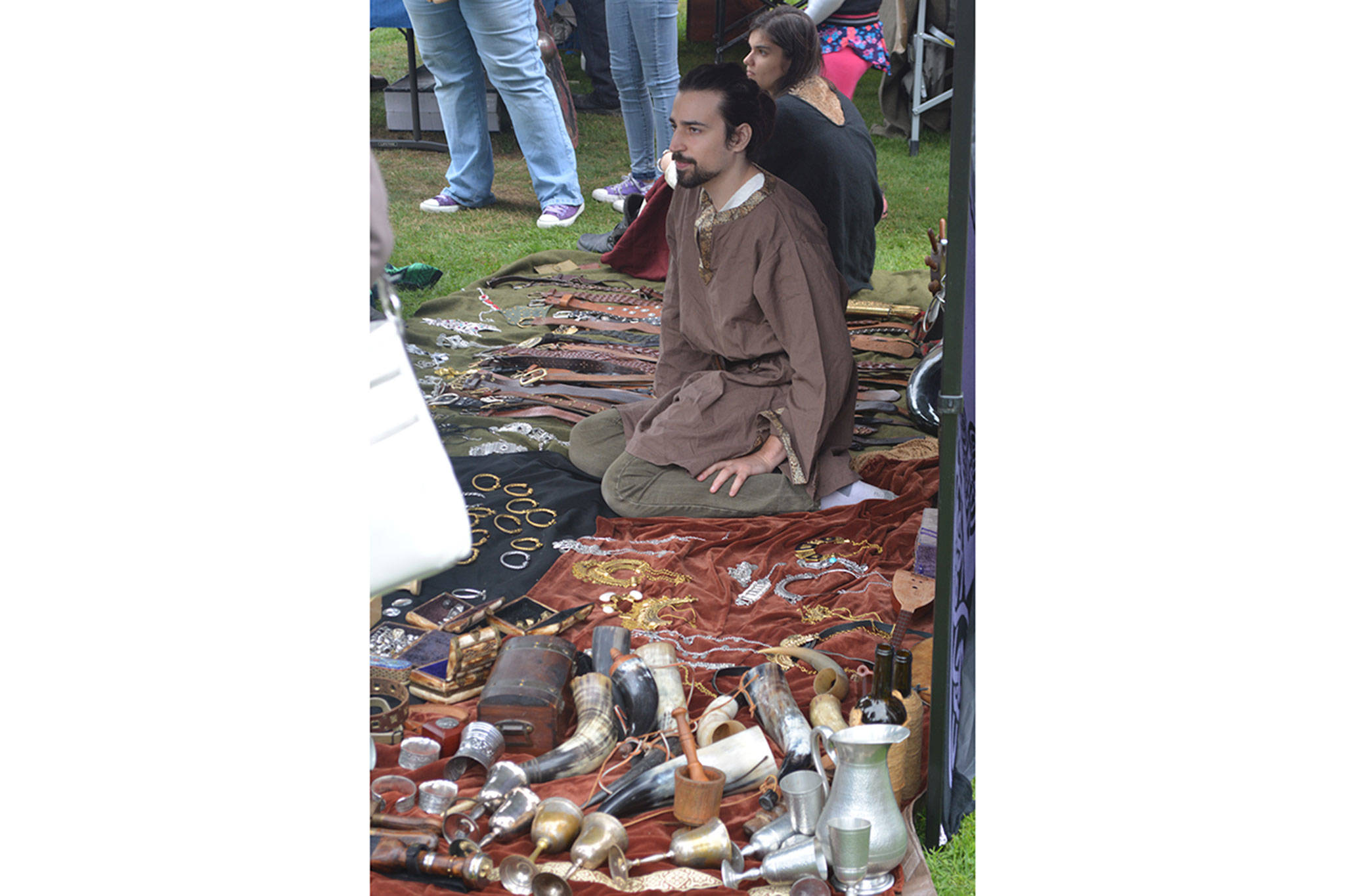 The two-day event was more interactive this year. Along with the bow and arrow there also were a hatchet throwing area. Kids were allowed to do battle with plastic and foam weapons. Onlookers were entertained with demonstrations in fighting, weaving, carving and more. There were numerous booths in a marketplace with all types of medieval wares being sold. Dan Barnard, also known as Capt. Chaos Vane, sold items from his Iron Dragon Trading Post.