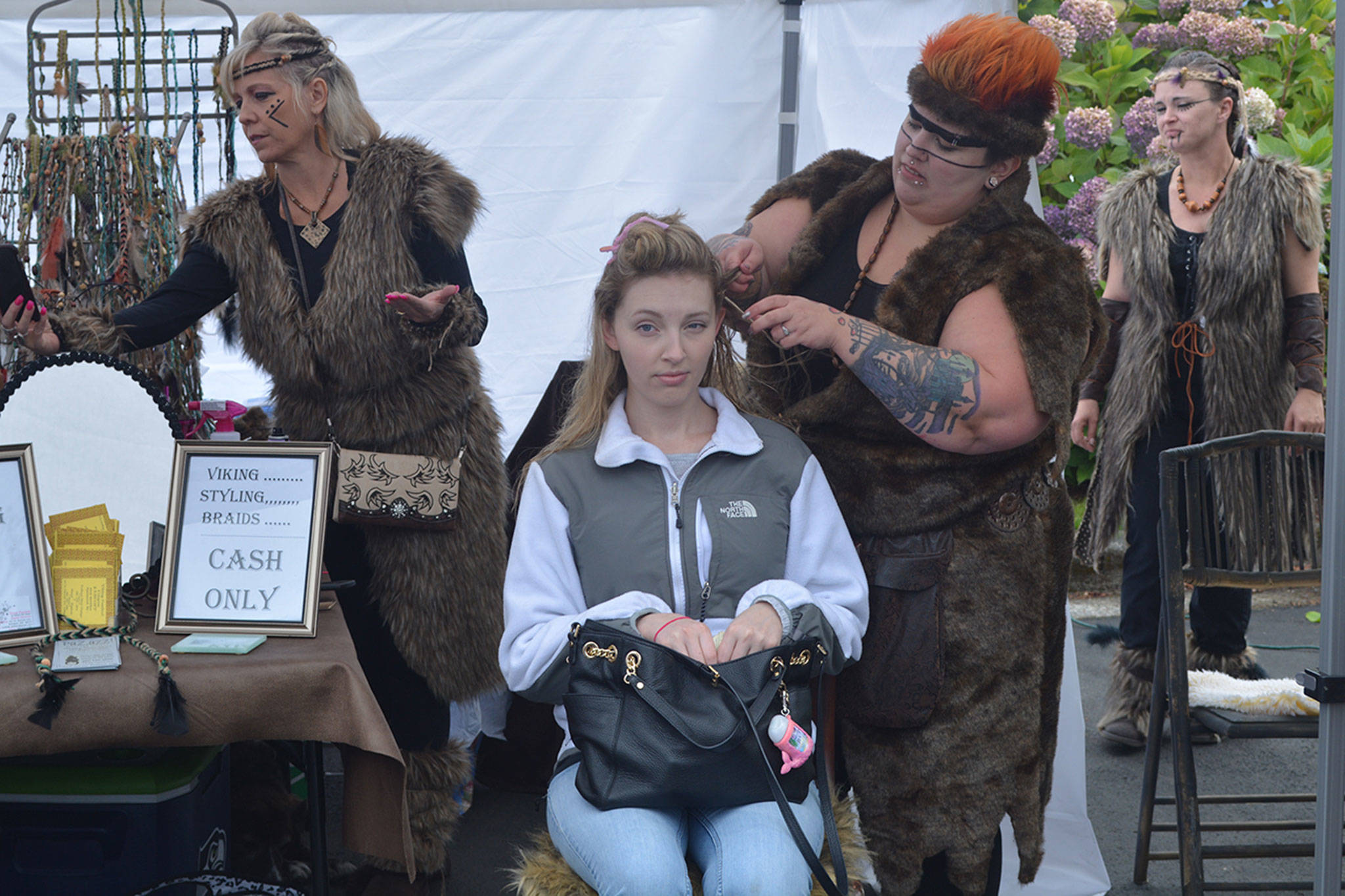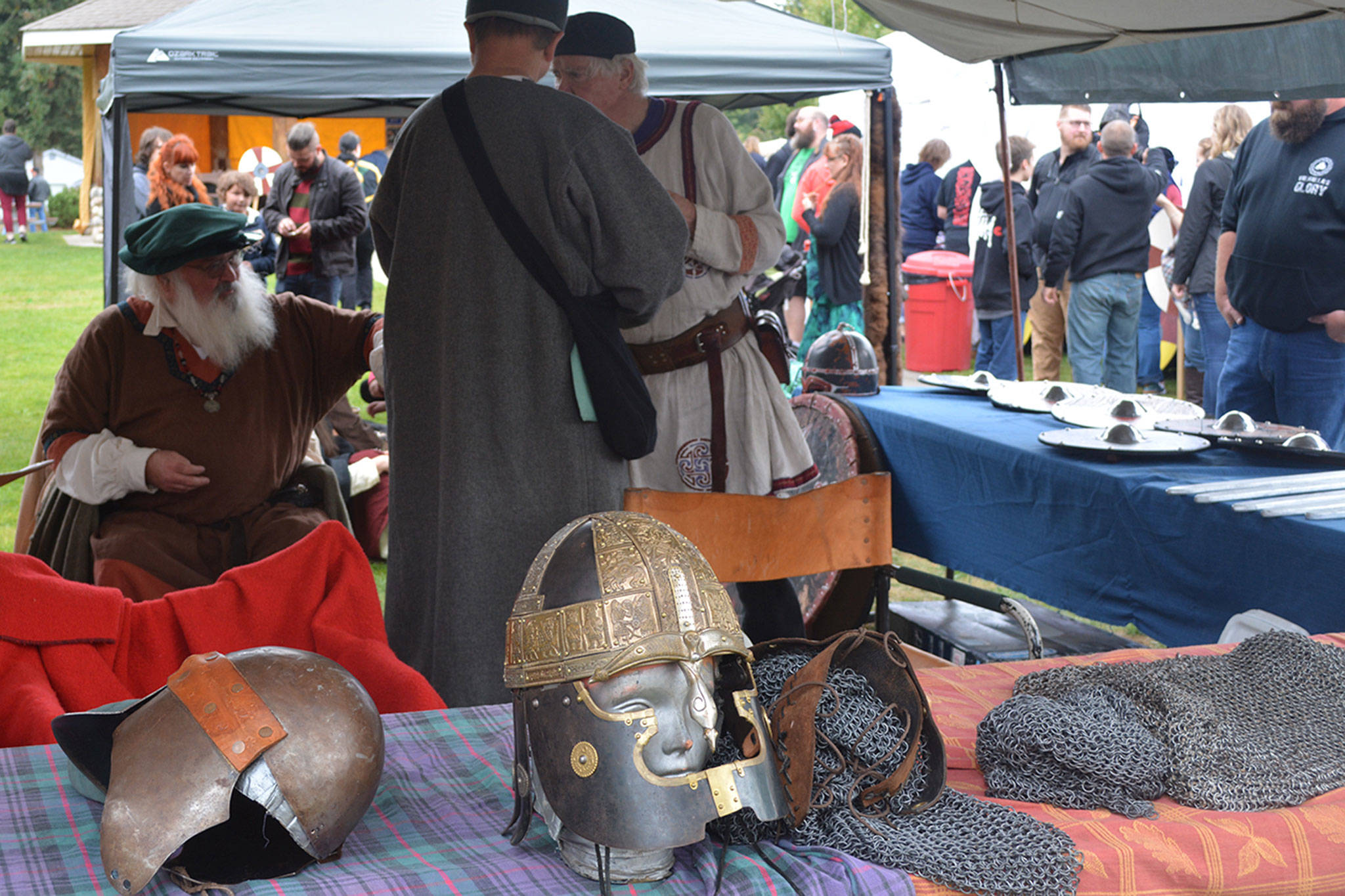 Other activities included: hair braiding, body stenciling, Celtic rune reading, jewelry making, weaving and flour grinding demonstrations. American Legion Post 76 started each day off with a Swedish Pancake Breakfast. There were skill and strength competitions, along with heavy weapons fighting and combat archery.