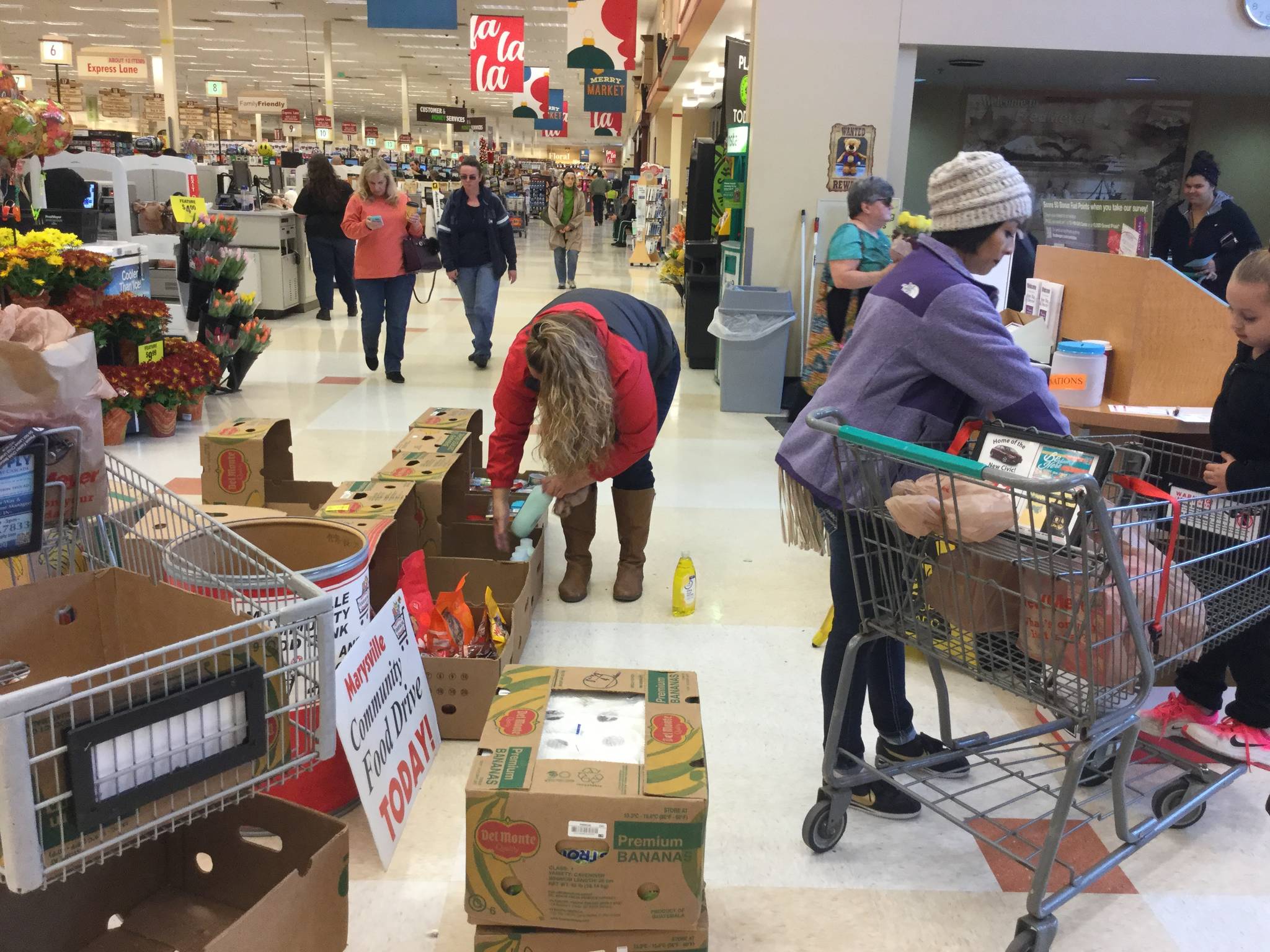 From now through the holidays, shoppers can donate anytime on trips to Fred Meyer, Albertsons, Grocery Outlet, Haggen, Wal-Mart and Safeway stores in Marysville and Smokey Point. Just drop items in the red barrels.