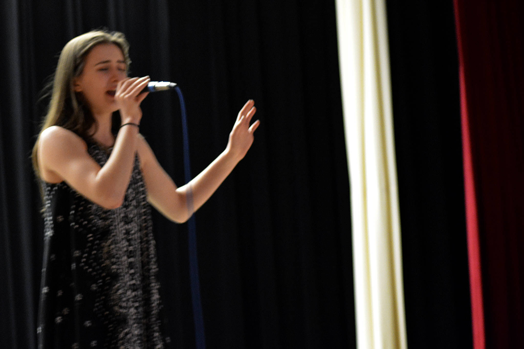 For the dancers, The Broadway Babies (see Page 1) were a crowd favorite, and McKenzie Raynor, at left, stood out in ballet. Vivian Palmer danced to the song, “I Will Always Love You,” and Riley Dehart also performed well, as did many other solo and duo acts. On the piano, Donald Lester, above left, showed off his fast fingers on the classic, “The Rhapsody.” A couple of bands also performed. The GMC Trio played a folk-style song, while The Ferguson Band, above right, played the rock classic, “That’s What I Like About You,” by The Romantics. On acoustic guitar, Megan Gooding played an interesting version of the song “Creep.” Two exceptional voices ended the evening. Ellie Sarr, 12, played piano and sang, while Victoria Seward sang the powerful “I Dreamed a Dream” from the musical play “Les Miserables.” The top acts from the two nights of tryouts will perform in the Talent Show itself June 15 at 6:30, also at M-P. Cost at the door is $5.