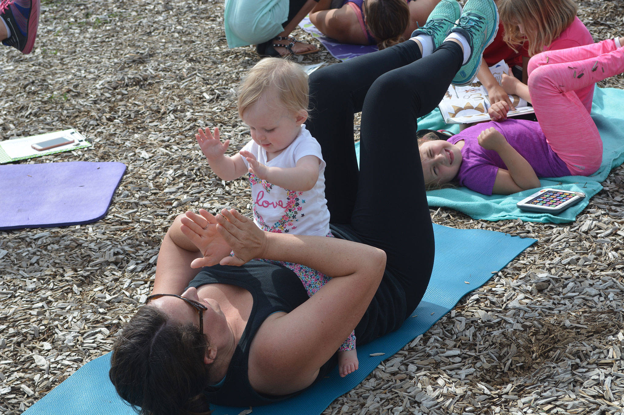 Personal trainer Justine Stone has been putting on the classes at Cedar Field and playground next to the Boys and Girls Club for about two years. Stone said some moms don’t like taking their kids to a gym and having them watched by sitter. “Moms like having their babies right there with them,” she said.