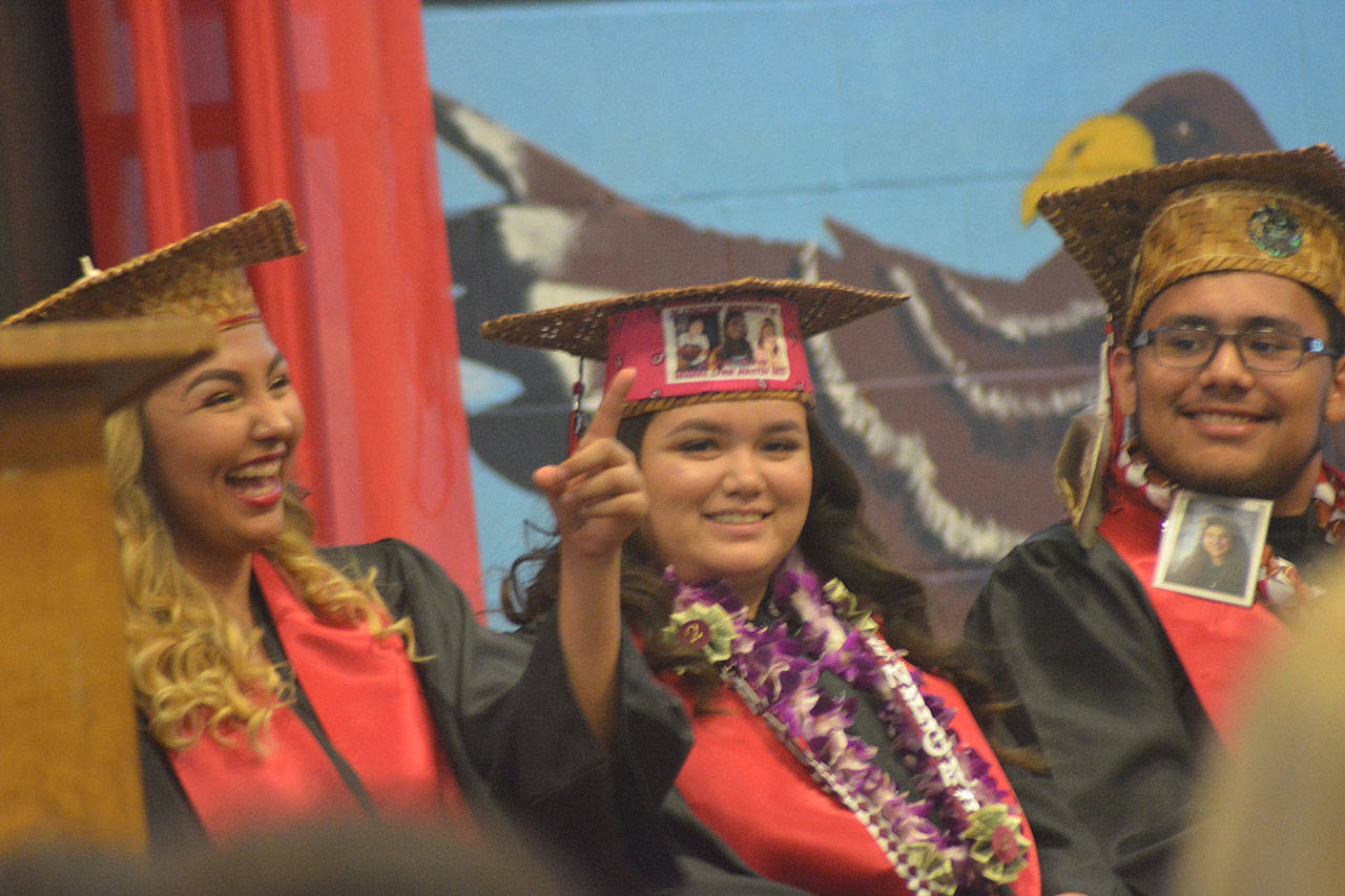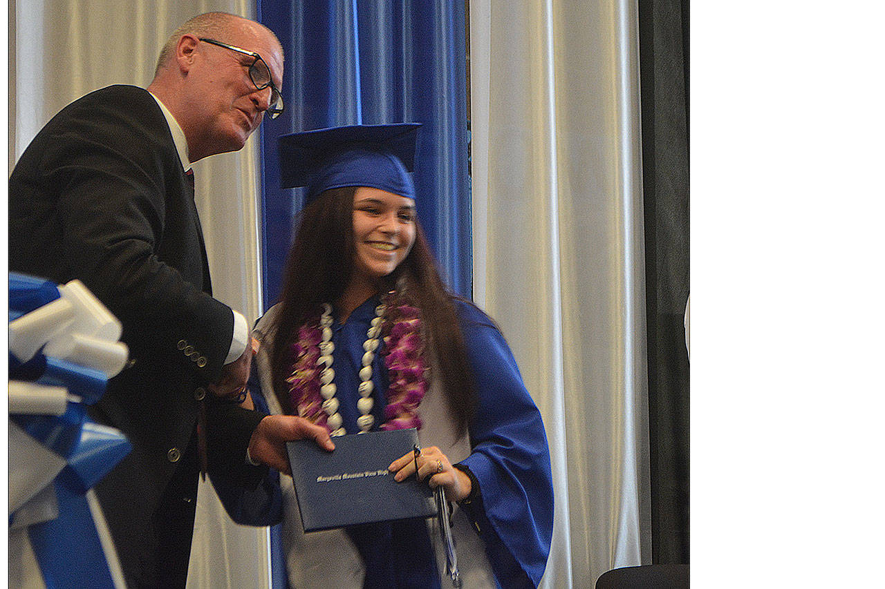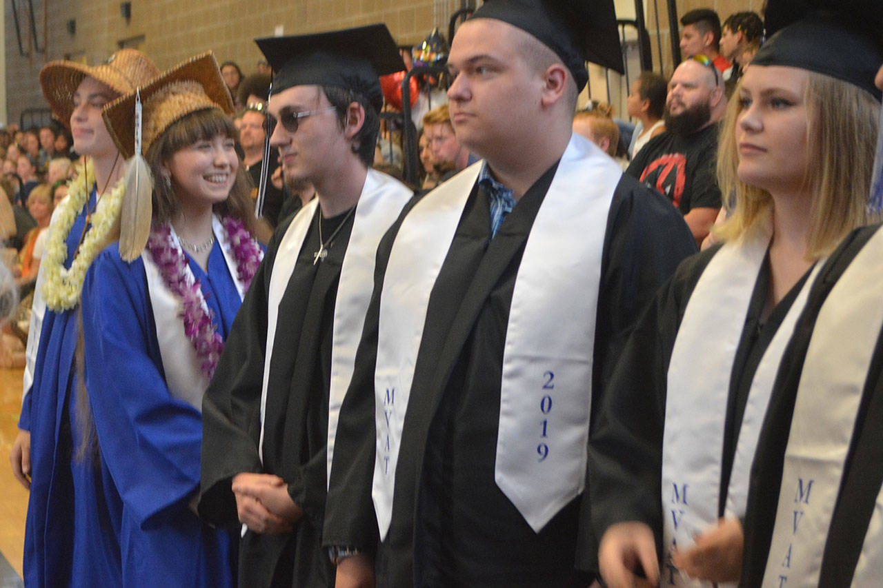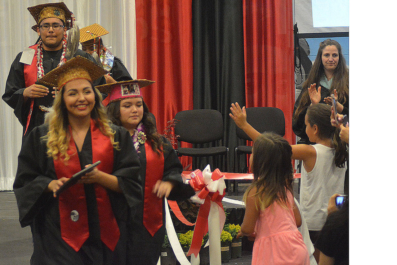 TULALIP – One speaker after another talked about overcoming obstacles, never giving up and looking to the future at the Mountain View Arts and Tech and Heritage High graduations at the Tulalip Campus of the Marysville School District June 13.