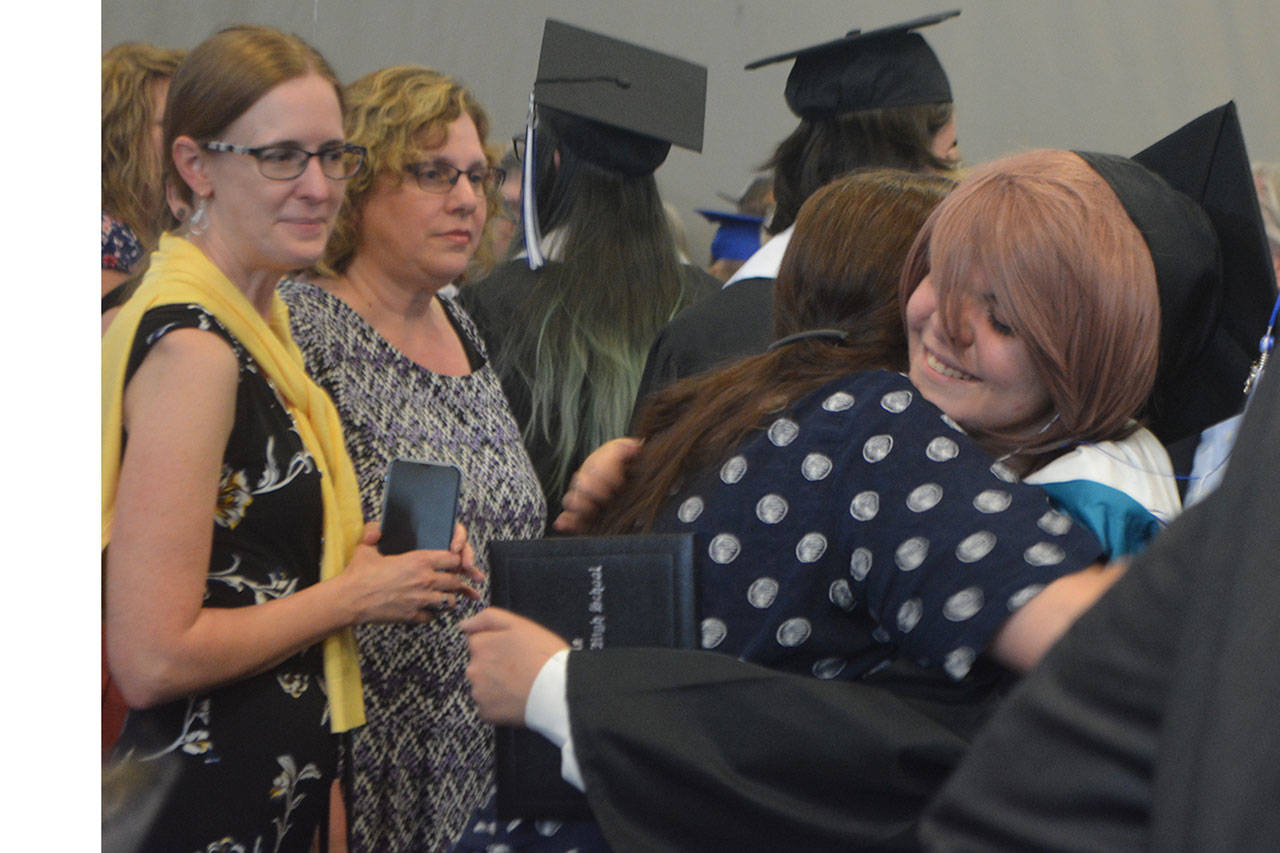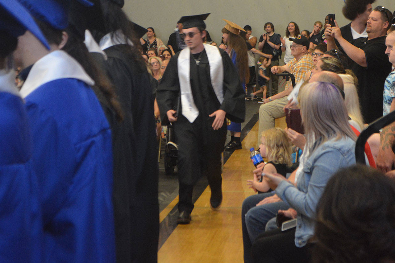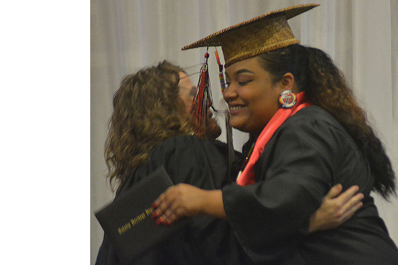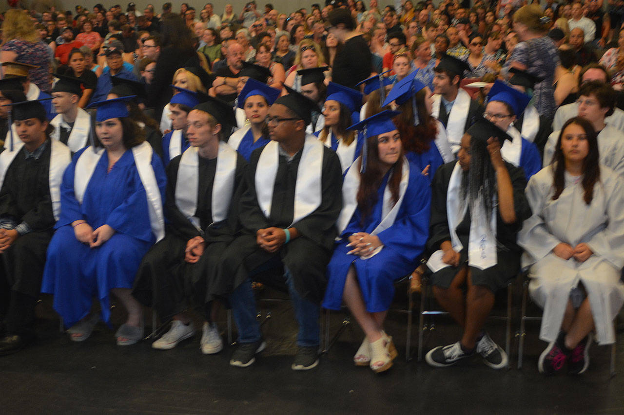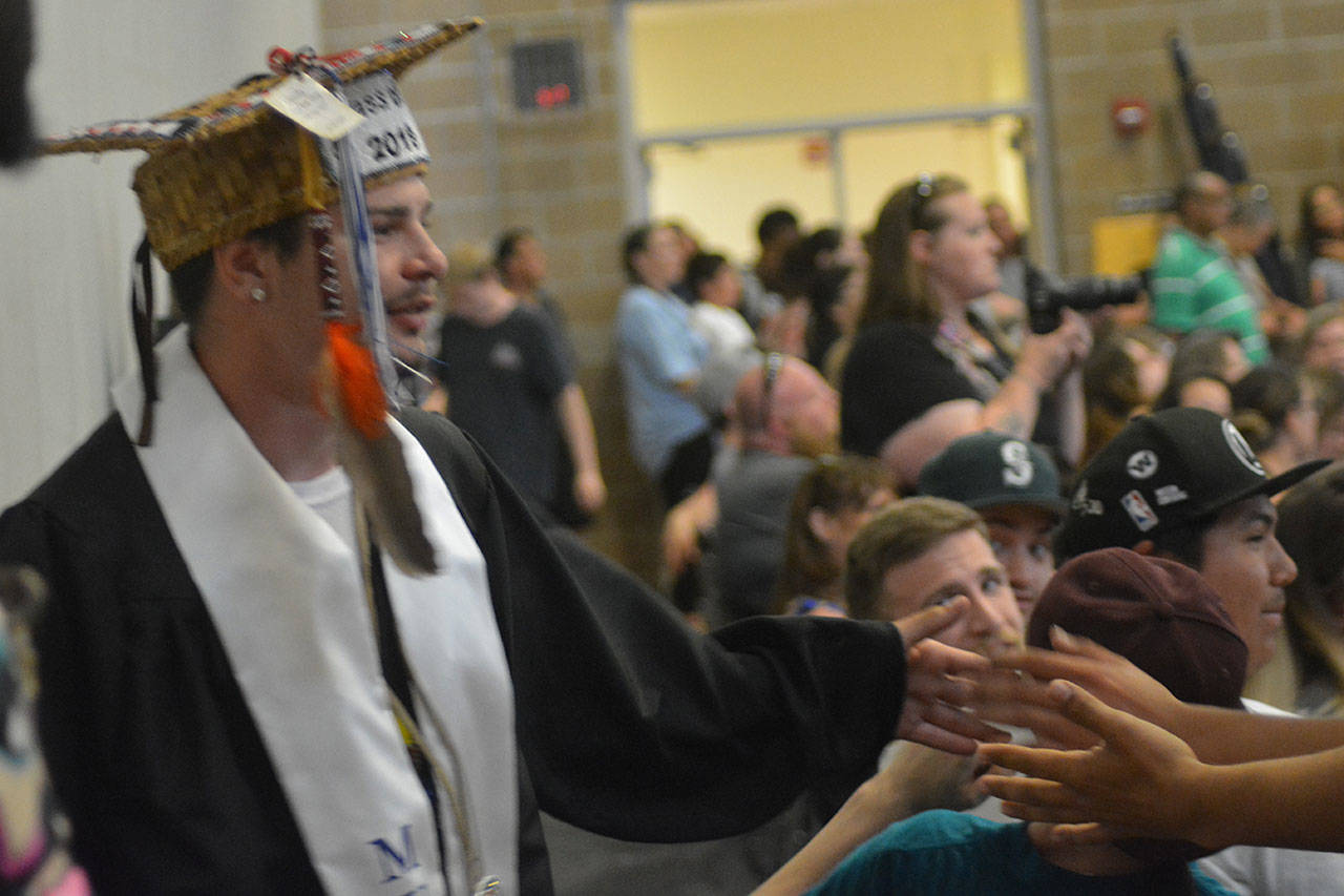 TULALIP – One speaker after another talked about overcoming obstacles, never giving up and looking to the future at the Mountain View Arts and Tech and Heritage High graduations at the Tulalip Campus of the Marysville School District June 13.