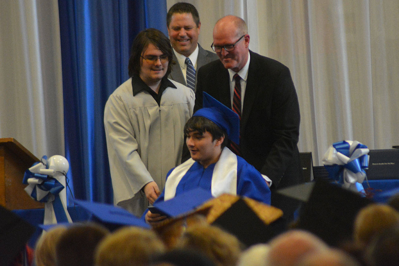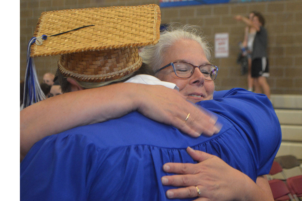 Teacher Cyrus Fryberg Jr. talked to the students about writing a speech for commencement, but he didn’t do it. “When I told them to do something they didn’t do it,” he said to laughter.