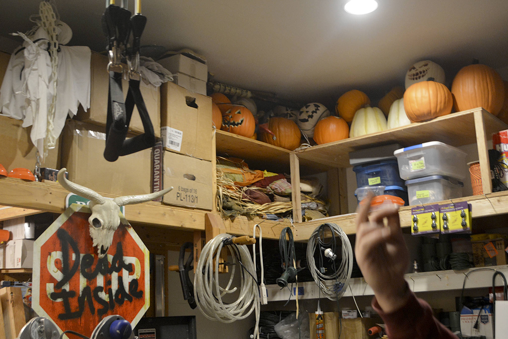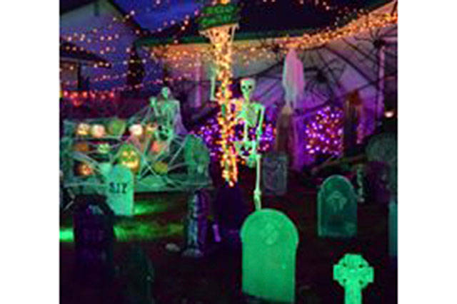 The Halloween showcase has more props but fewer lights. The first year, they had 80 trick-or-treaters. This year, they had 900 in about three hours on Halloween night. He sets that up Oct. 1, but only has the music and show going for three days around Halloween. That setup has to come right down because six days later he starts setting up for Christmas.