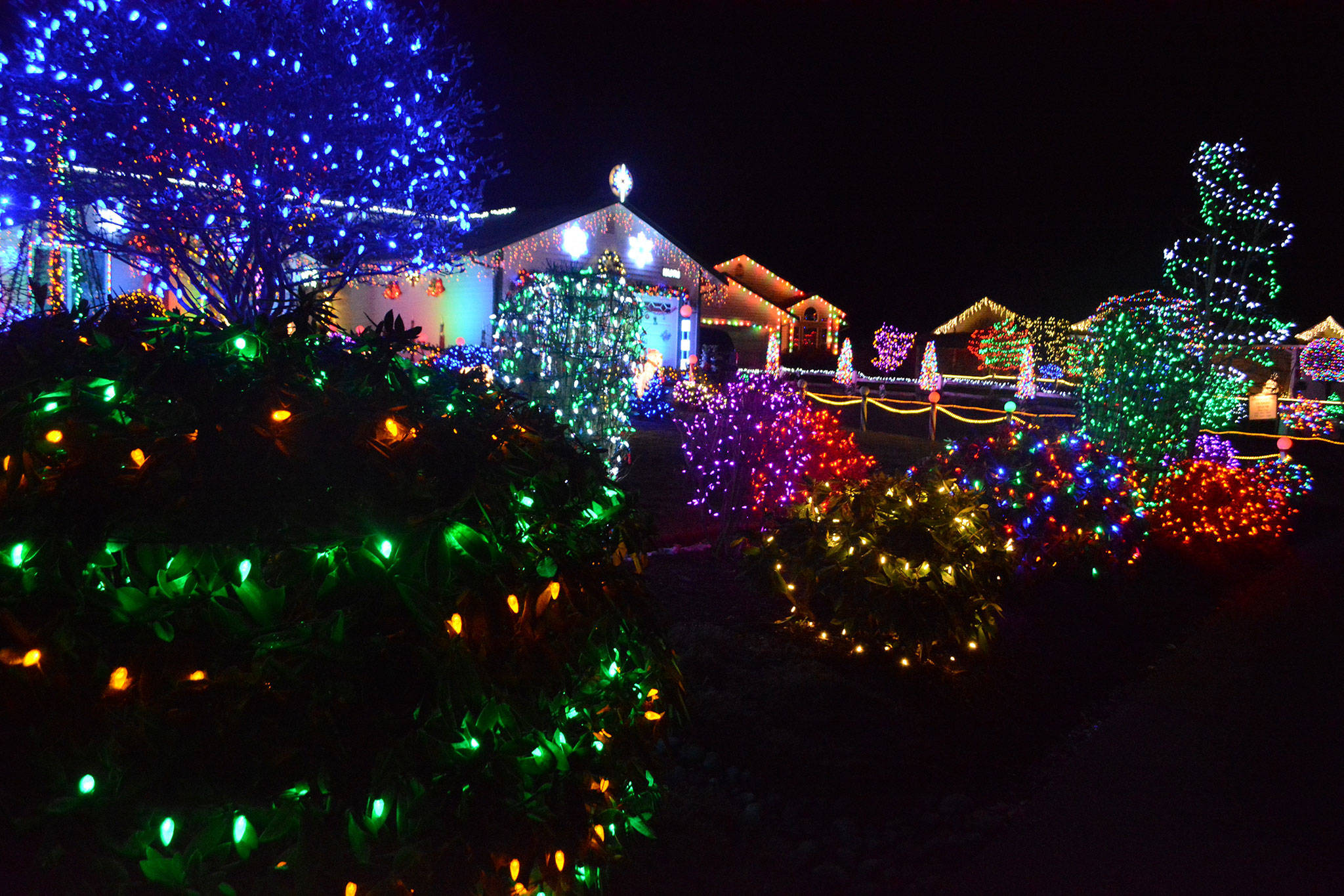 He also likes to look at the comments on his Facebook site called, “Holiday Lights in Marysville.” Warren talks to folks each night. Any monetary or food donations go to Volunteers of America. The show runs from 5-9 p.m. every day except Friday and Saturday, when it’s open an hour longer. Warren got started with this after a longtime friend, Mark Zembrusky, got an animation showcase going called Woodinville Wonderful. He said now there is a community of about 80 enthusiasts who keep in touch and share ideas. His showcase brings a lot of traffic into the cul-de-sac, but he said his neighbors have been great. The past few years many of them have expanded their Christmas light displays.