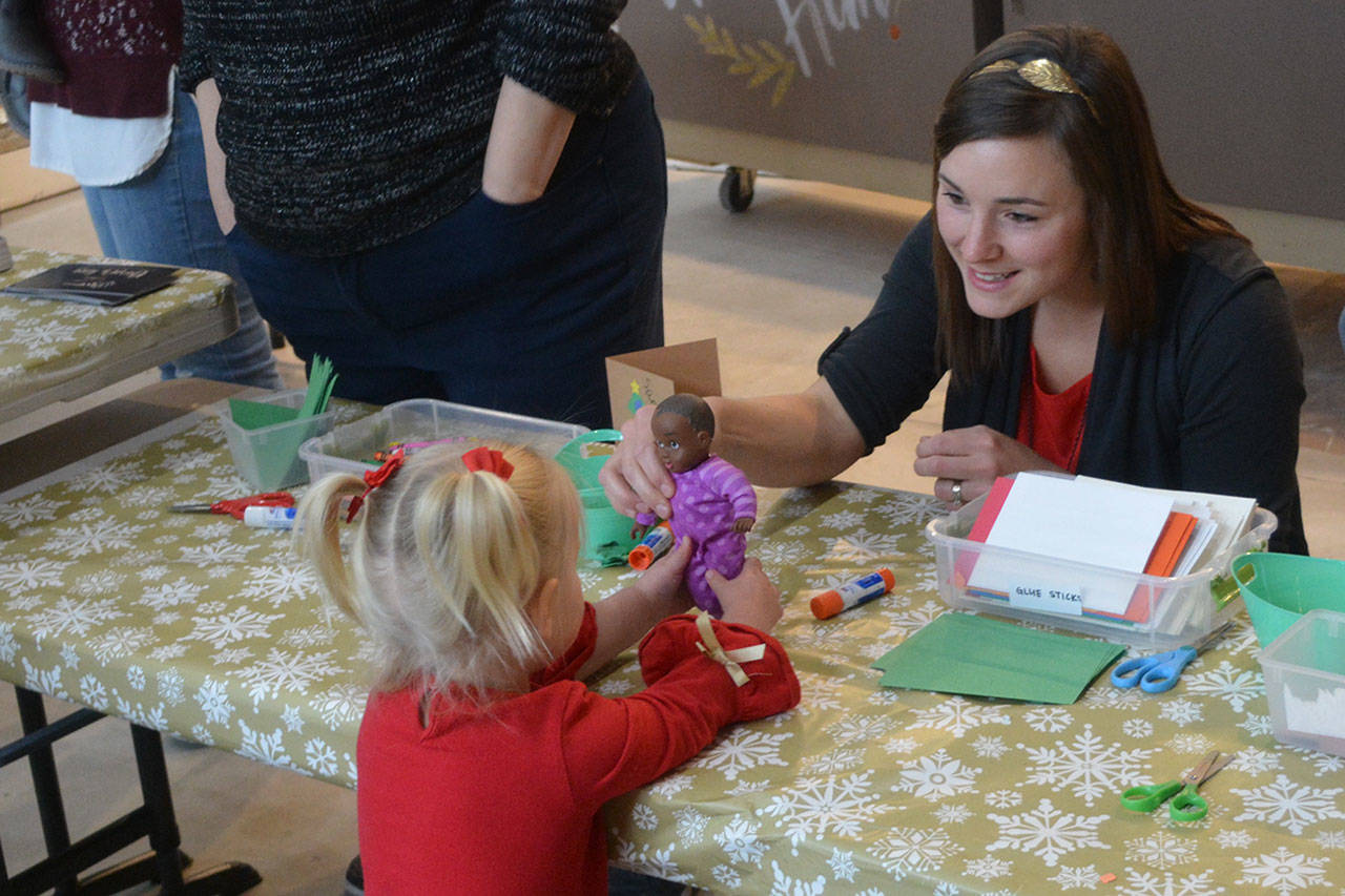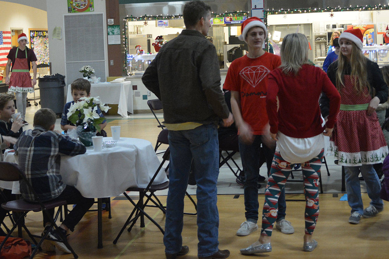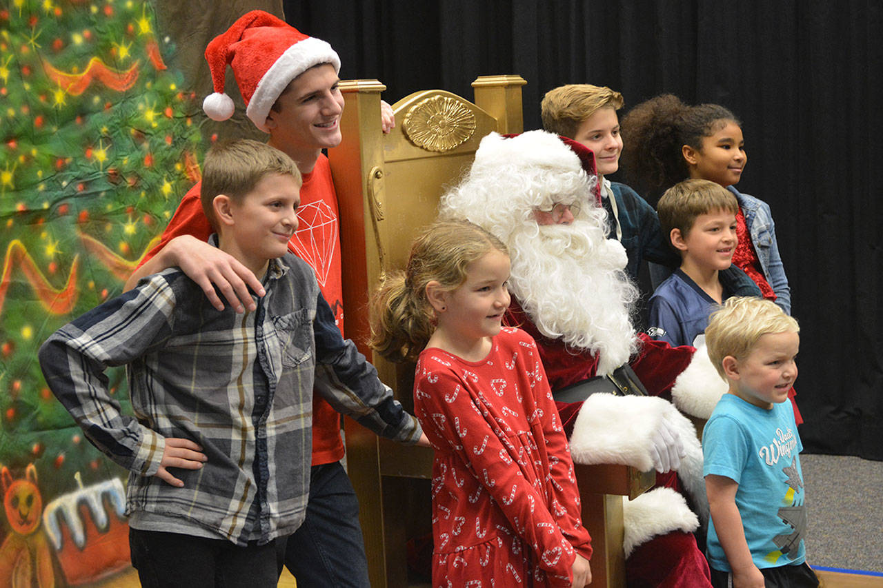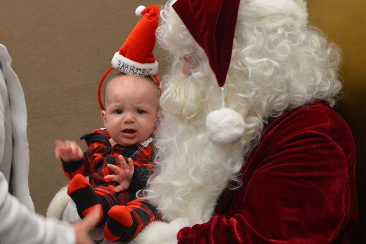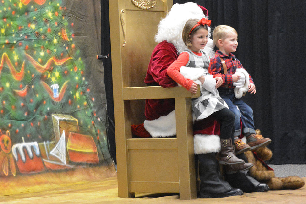 Before that, though, the holiday parade took place. Police, fire, tractors, marching groups and more performed. Onlookers mostly camped out under business overhangs or their own bumbershoots. Cascade Valley Senior Living won the Grand Prize for its Winter Wonderland entry.