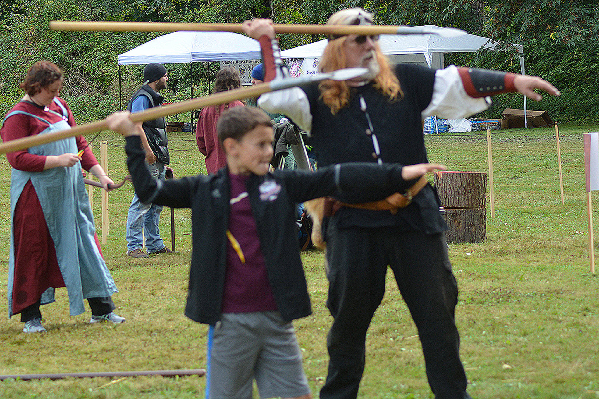 This year, there were 15 volunteers, 10 re-enactment groups and 40 vendors. Battles took place all over the large field. Participants like Elijah Joy, 9, of Arlington, tried hands-on activities, such as throwing spears and shooting a bow and arrow.