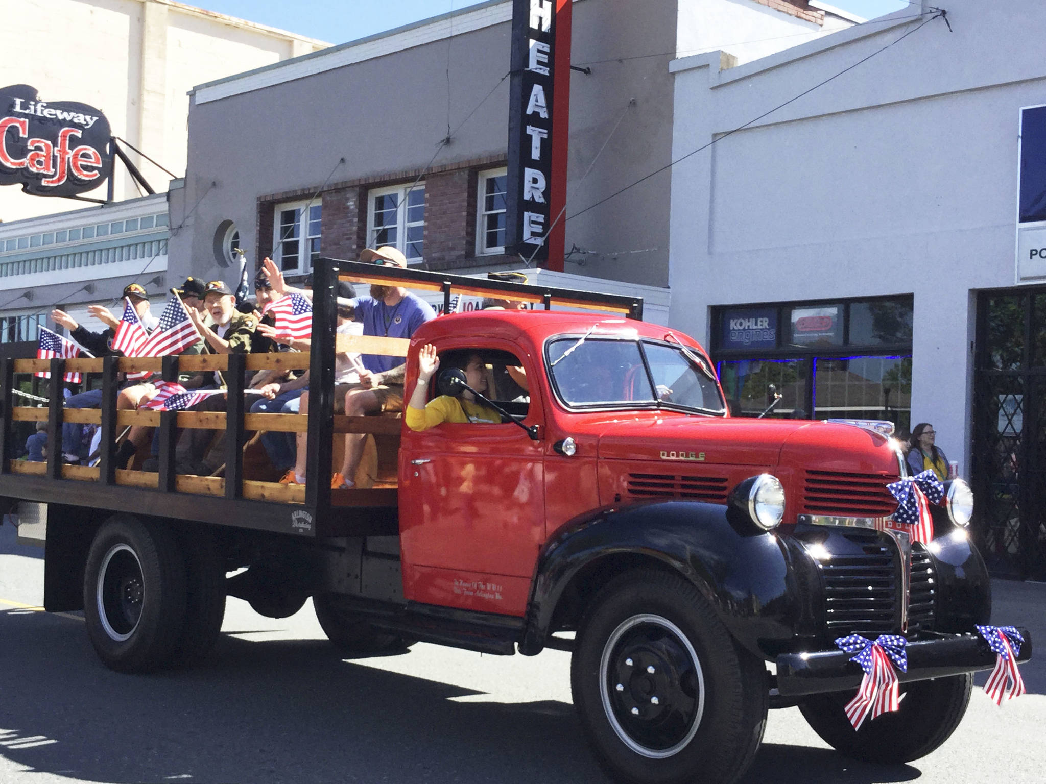 Whether on foot or riding in a restored shiny-red flatbed truck, veterans in the 20-minute parade had plenty of company. Other entries included first responders, American Legion Riders, the Arlington High School marching band in their spiffy new uniforms, Arlington High School Air Force Jr. ROTC, Boy Scouts, Girl Scouts, Cub Scouts and others.