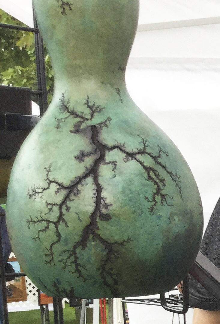 Grams Gourds had them for sale at their booth. Owners Nancy – the “Grams” – and husband Joe Wilson of Marysville feel like they’ve found a way to capture lightning in a gourd, and the specialty gourds are one of their hottest hand-decorated, hand-carved items.