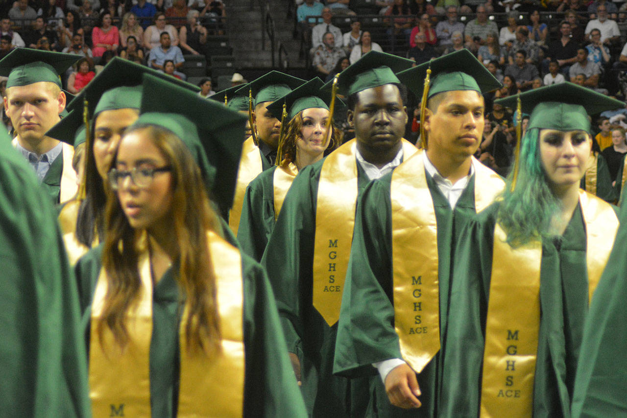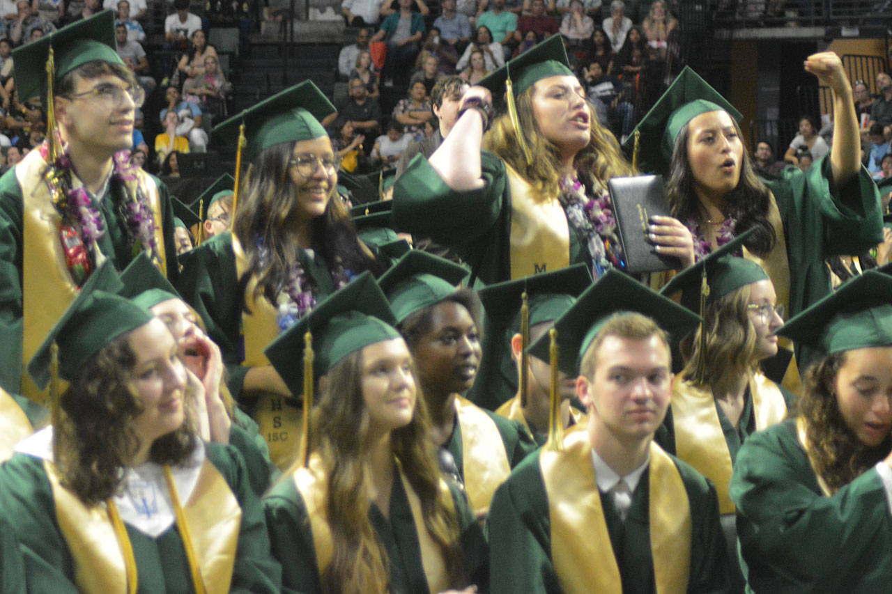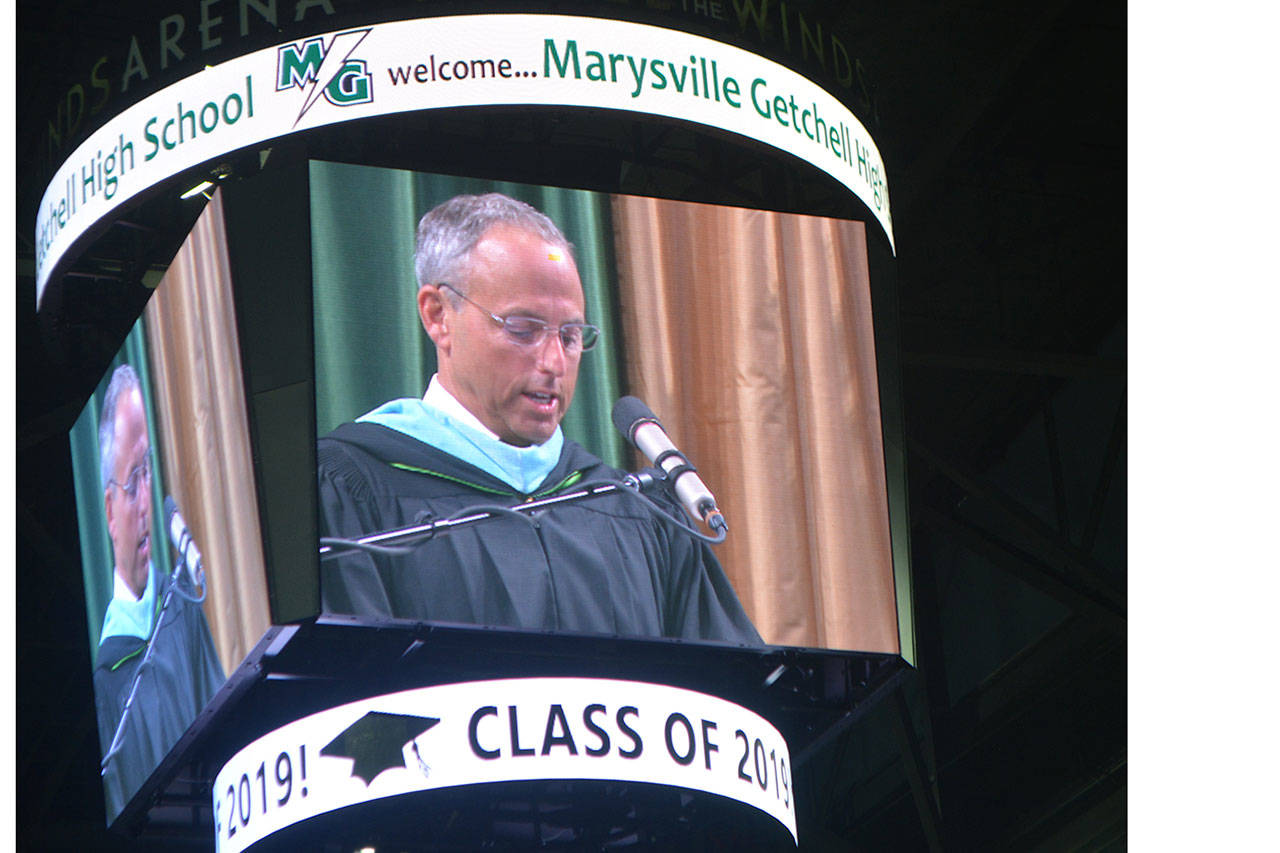 EVERETT – As if parents don’t feel old enough when their child graduates, Marysville Getchell principal Richard Zimmerman jokingly reminded them at the school’s ceremony Wednesday at Angel of the Winds Arena.