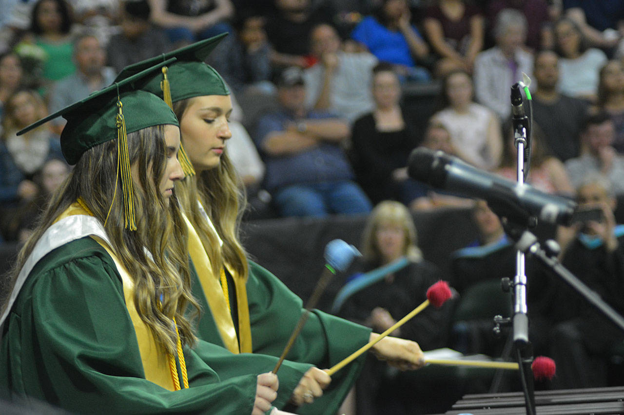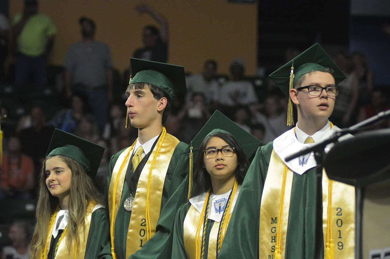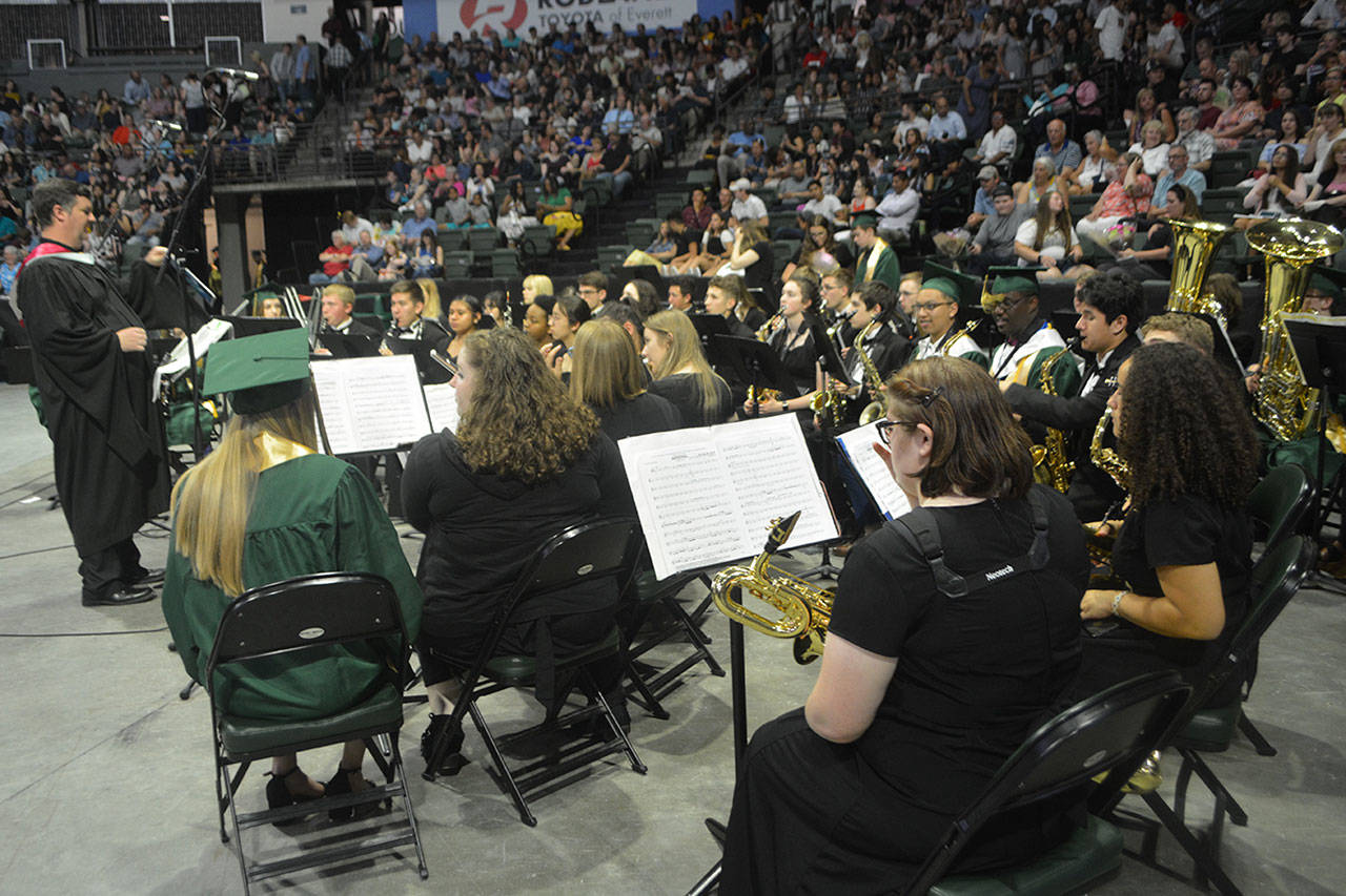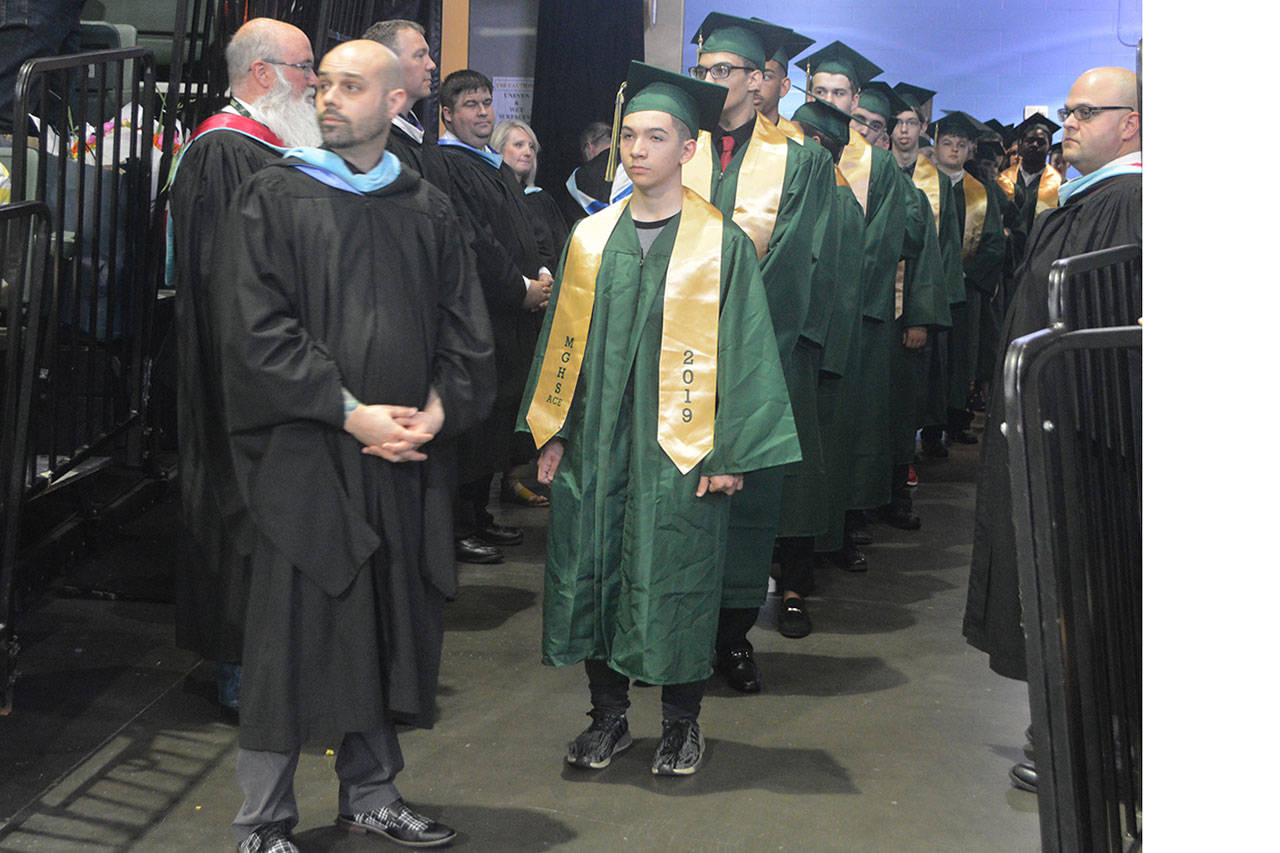 EVERETT – As if parents don’t feel old enough when their child graduates, Marysville Getchell principal Richard Zimmerman jokingly reminded them at the school’s ceremony Wednesday at Angel of the Winds Arena.