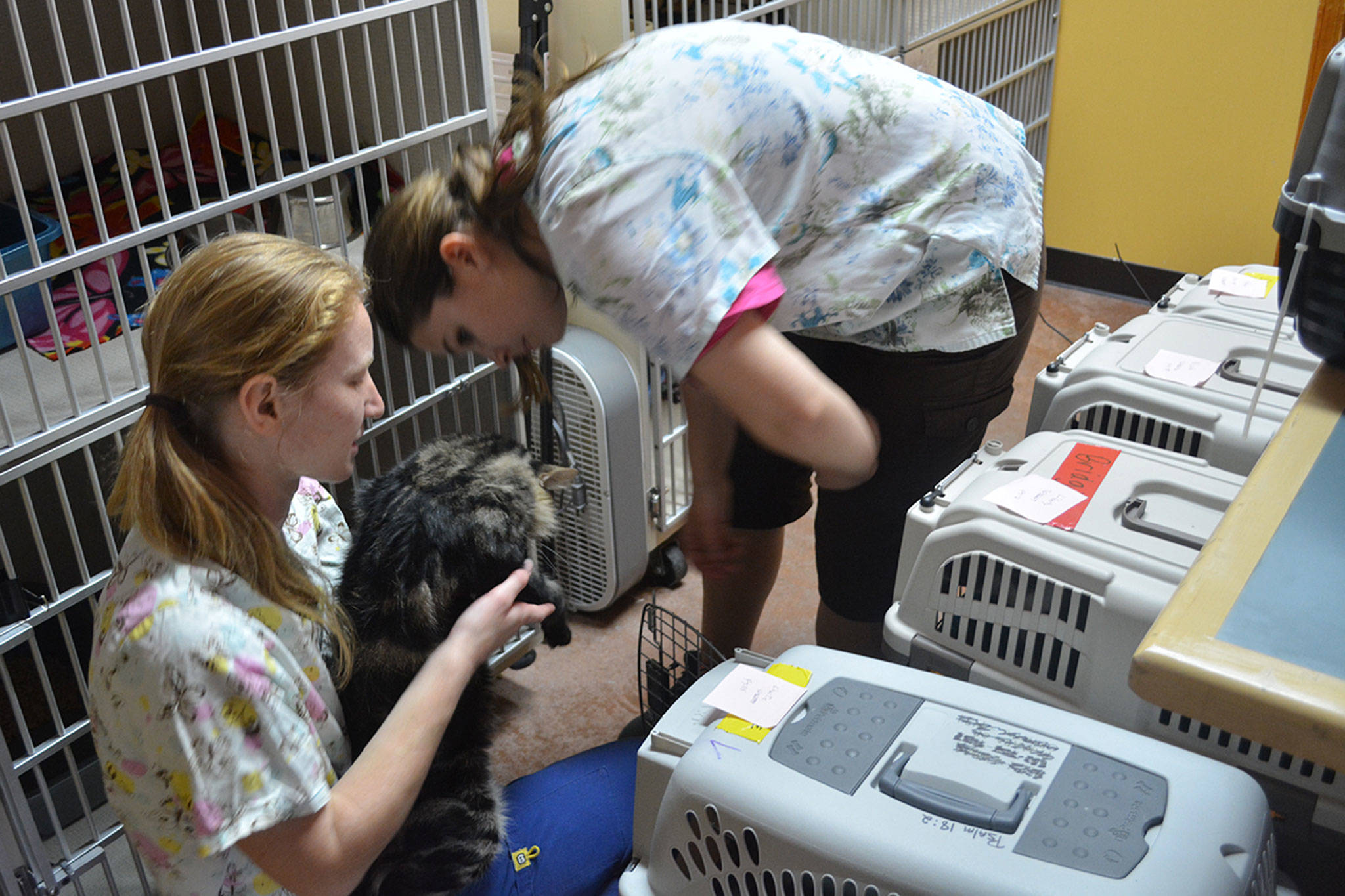 Randy White, who drove the cats here from Seatac, said they were taken from several shelters in the flood zone, flew on a small plane to Seattle then were driven to NOAH. One NOAH program that helps a lot is for foster parents. NOAH has pets that stay with them “to expand our walls,” Kurtz said.
