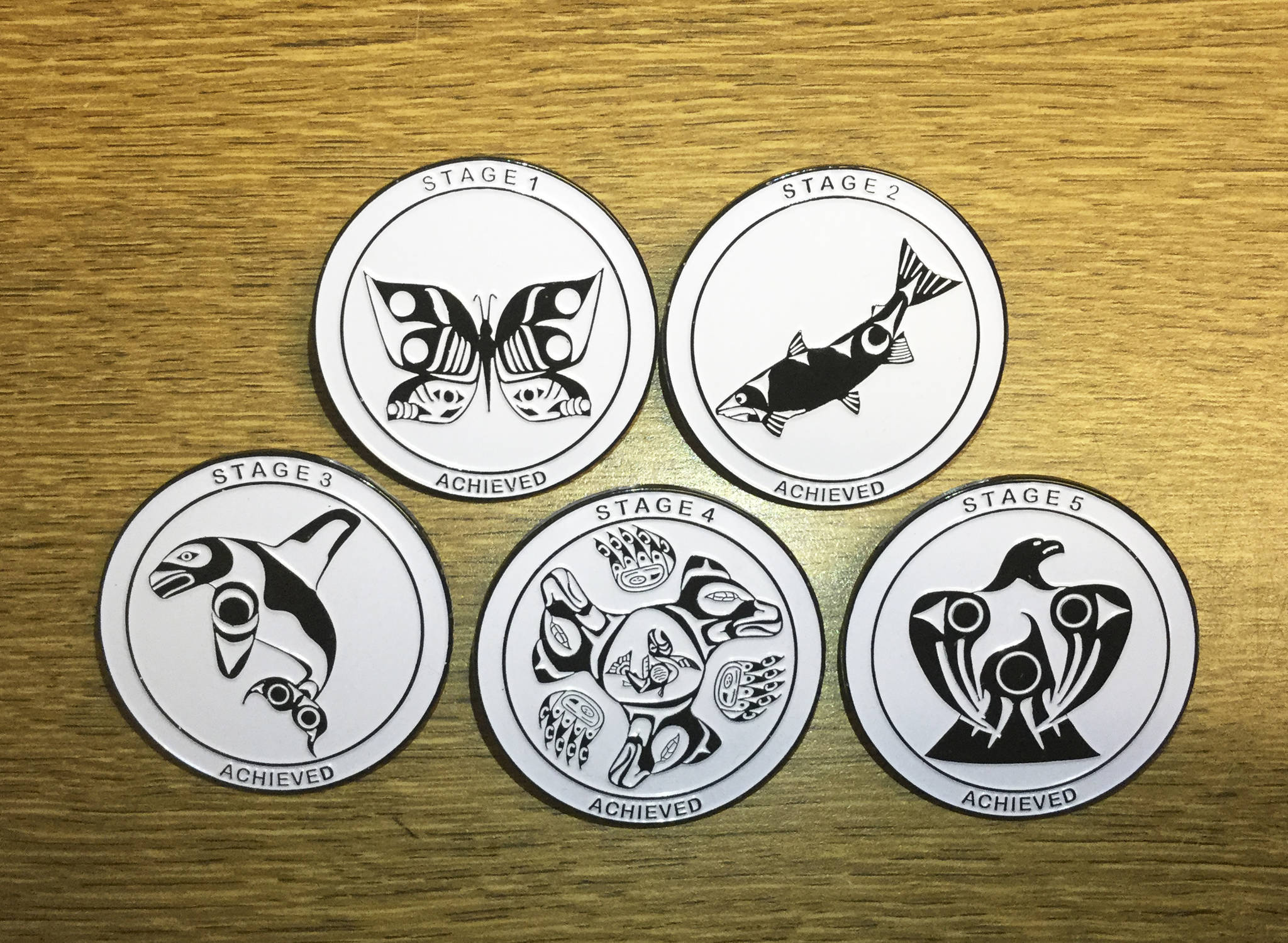 Participants receive a decorative Native American lapel pin that symbolizes their completion at each stage. Most participants are now are at Stage 2.