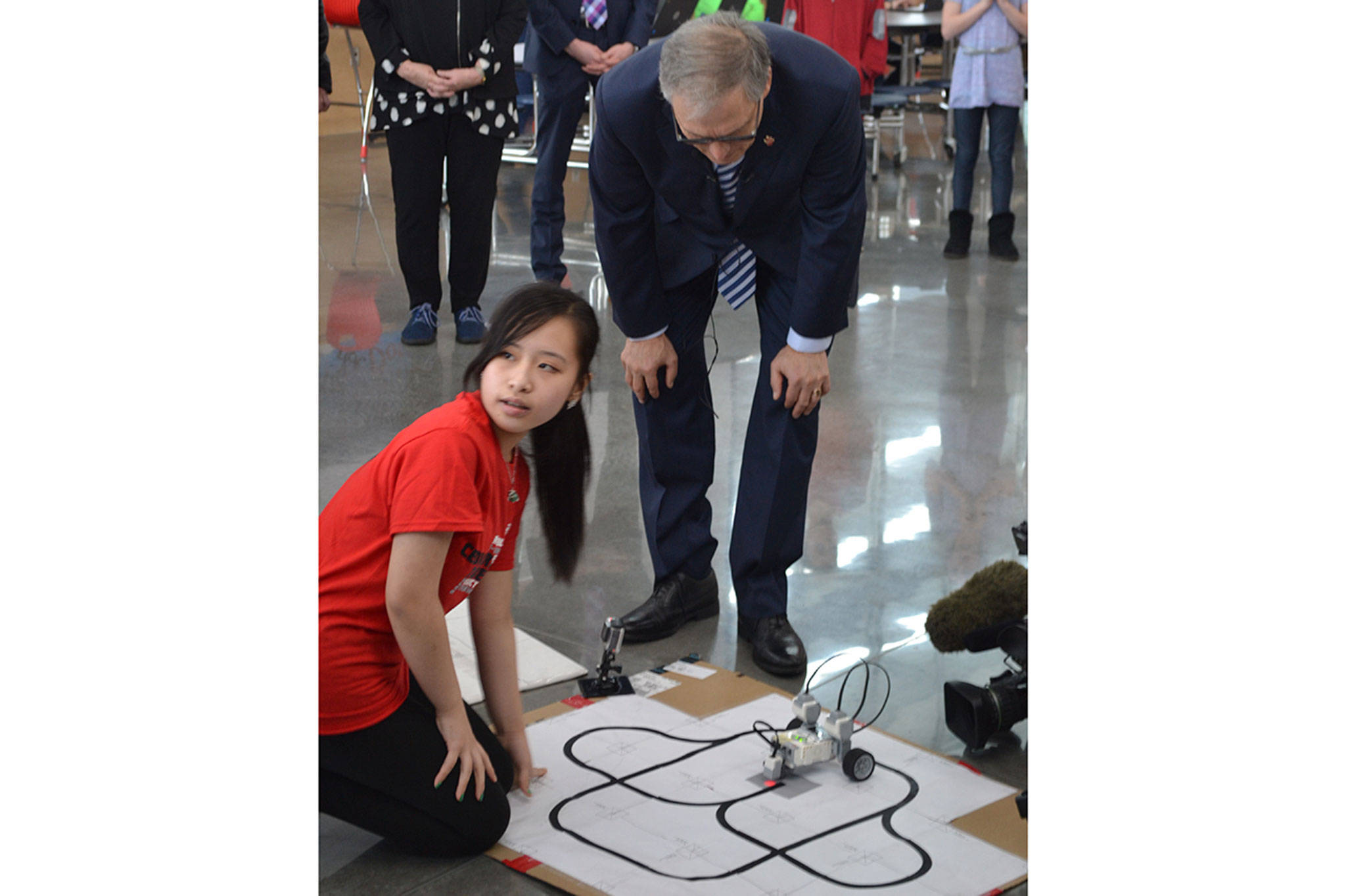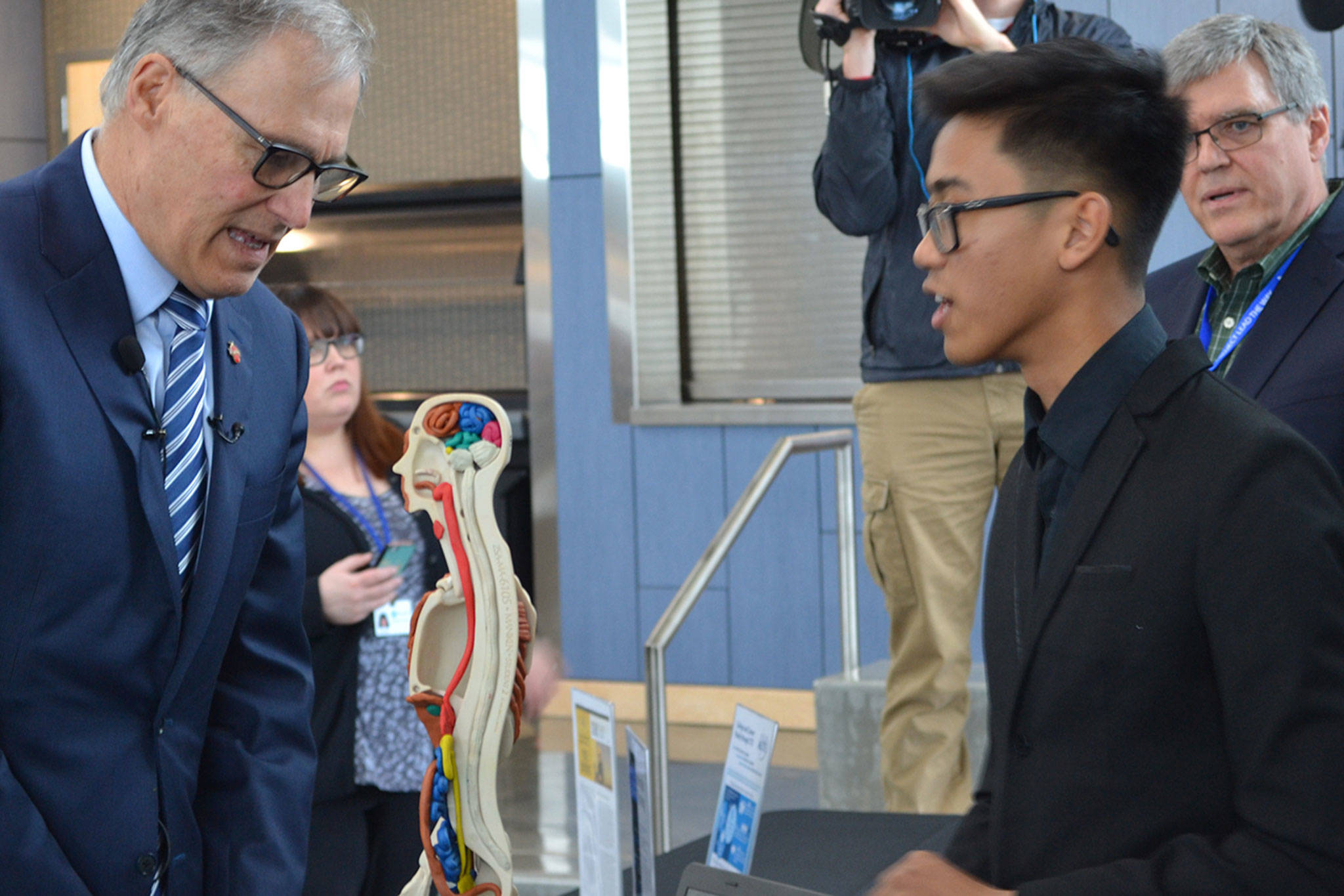 Fitzpatrick Varias of Marysville Getchell High School’s Bio-Med academy talked to the governor about anatomy and physiology and how the body’s parts interact.