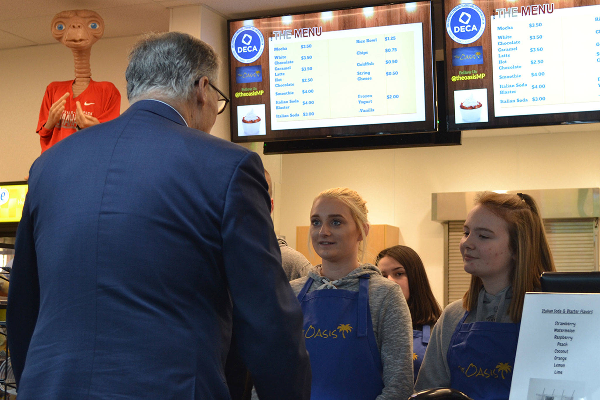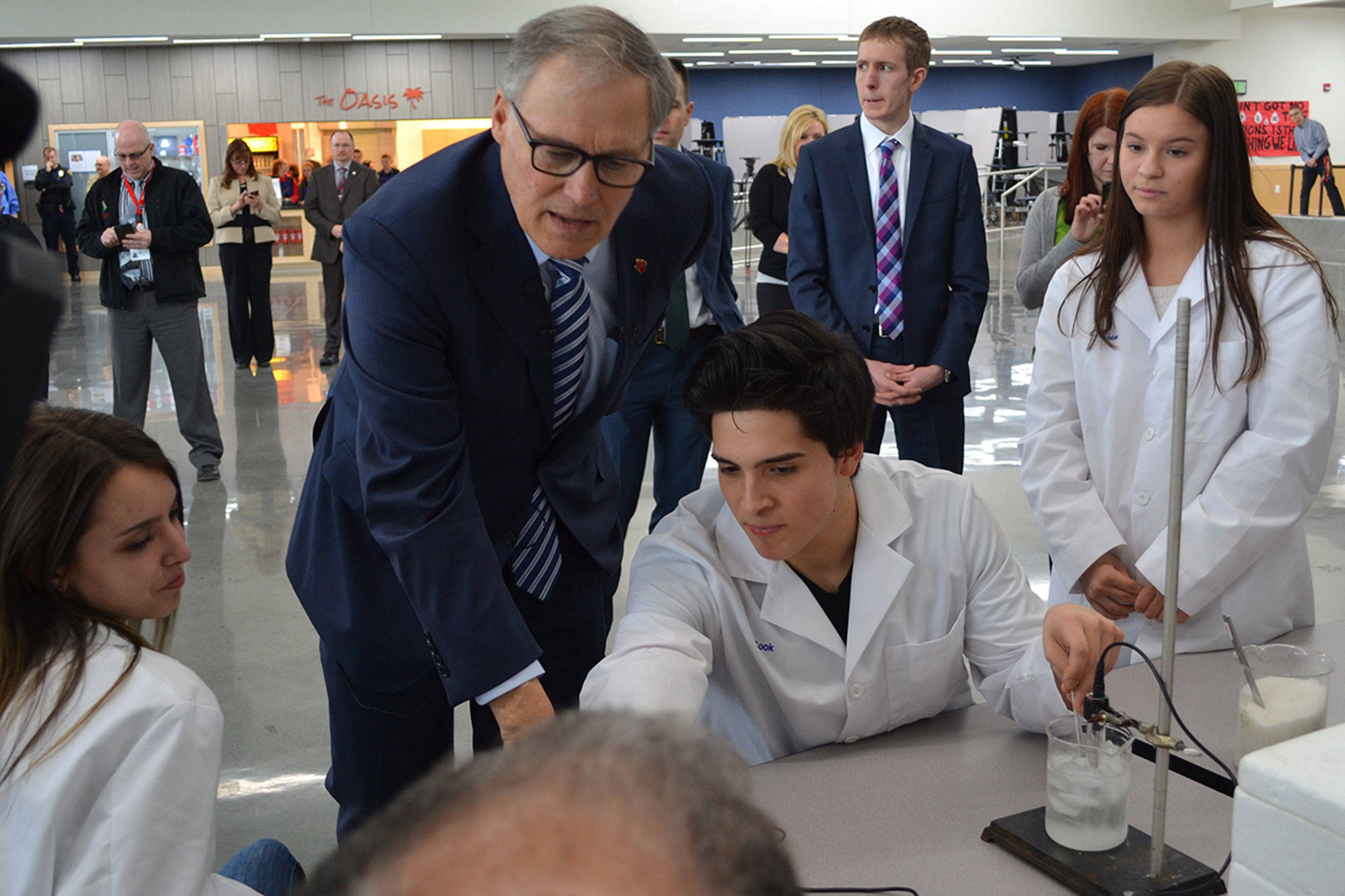 Inslee was at M-P because it has used counselors and mental health professionals to help its students since the shooting 2 1/2 years ago.