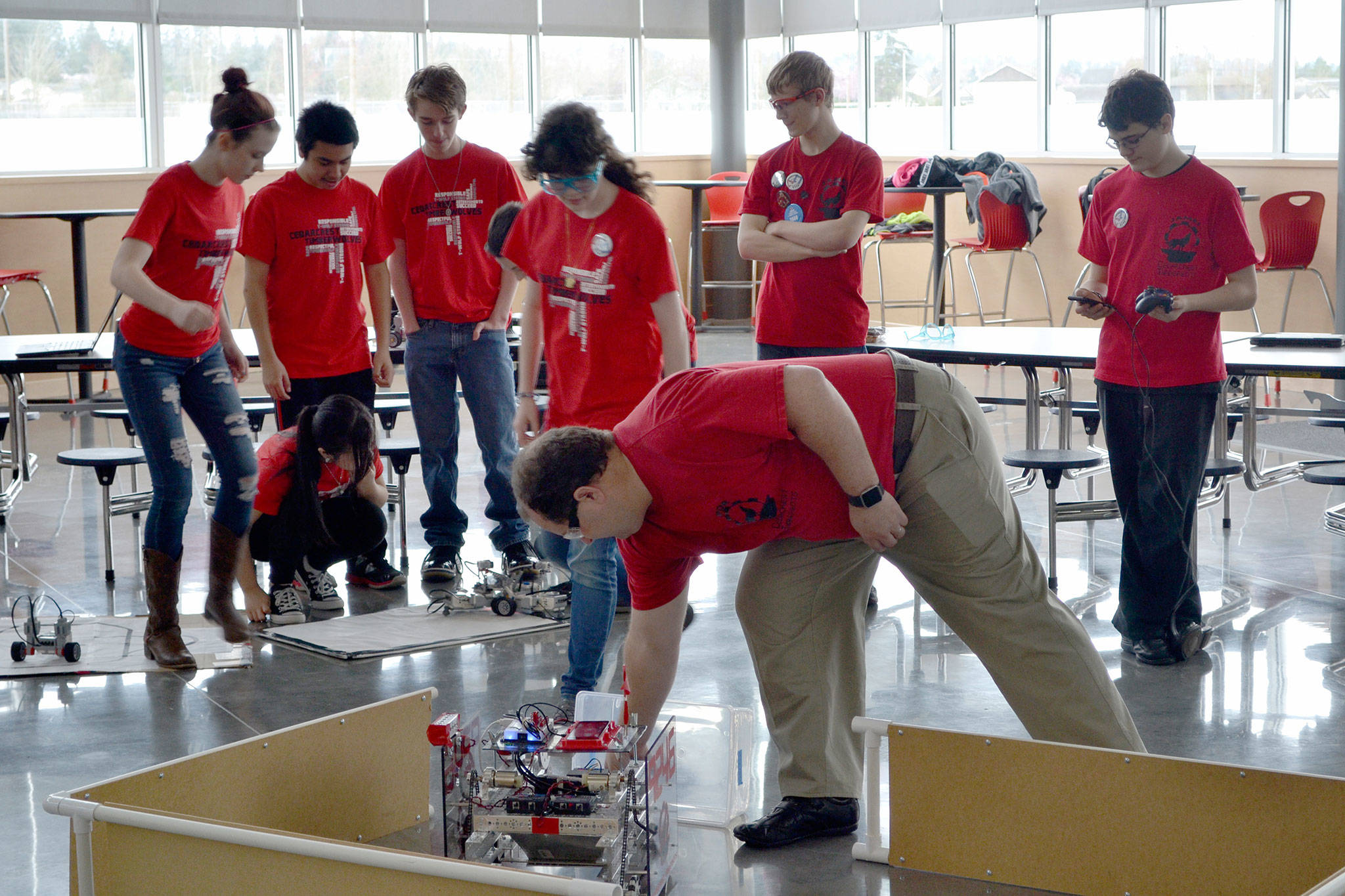 He then looked at robotics built by middle school students.