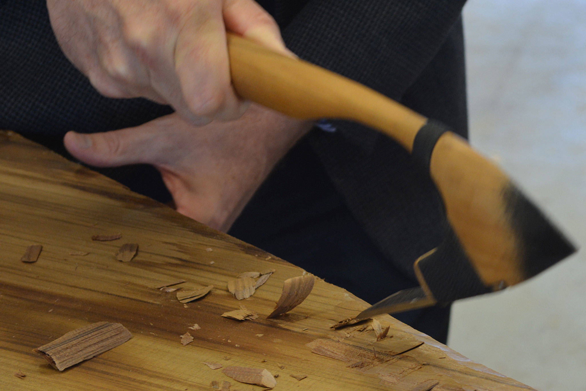 Larsen even got a chance to use one of the chisels, although he was warned it was razor sharp.