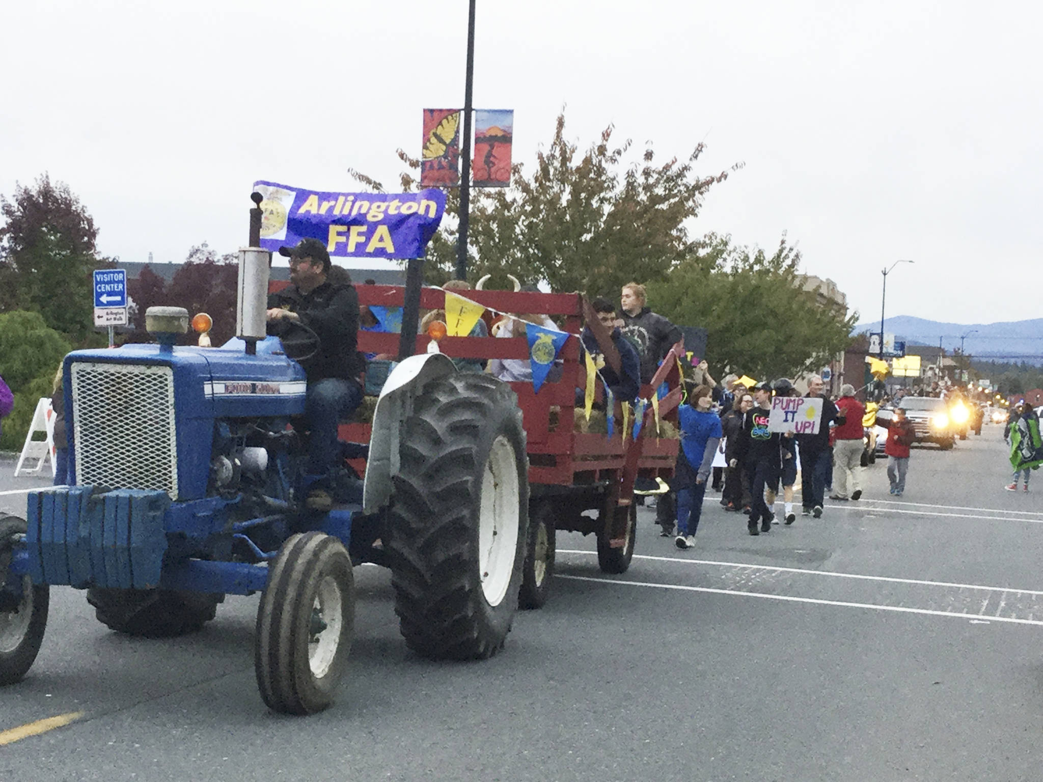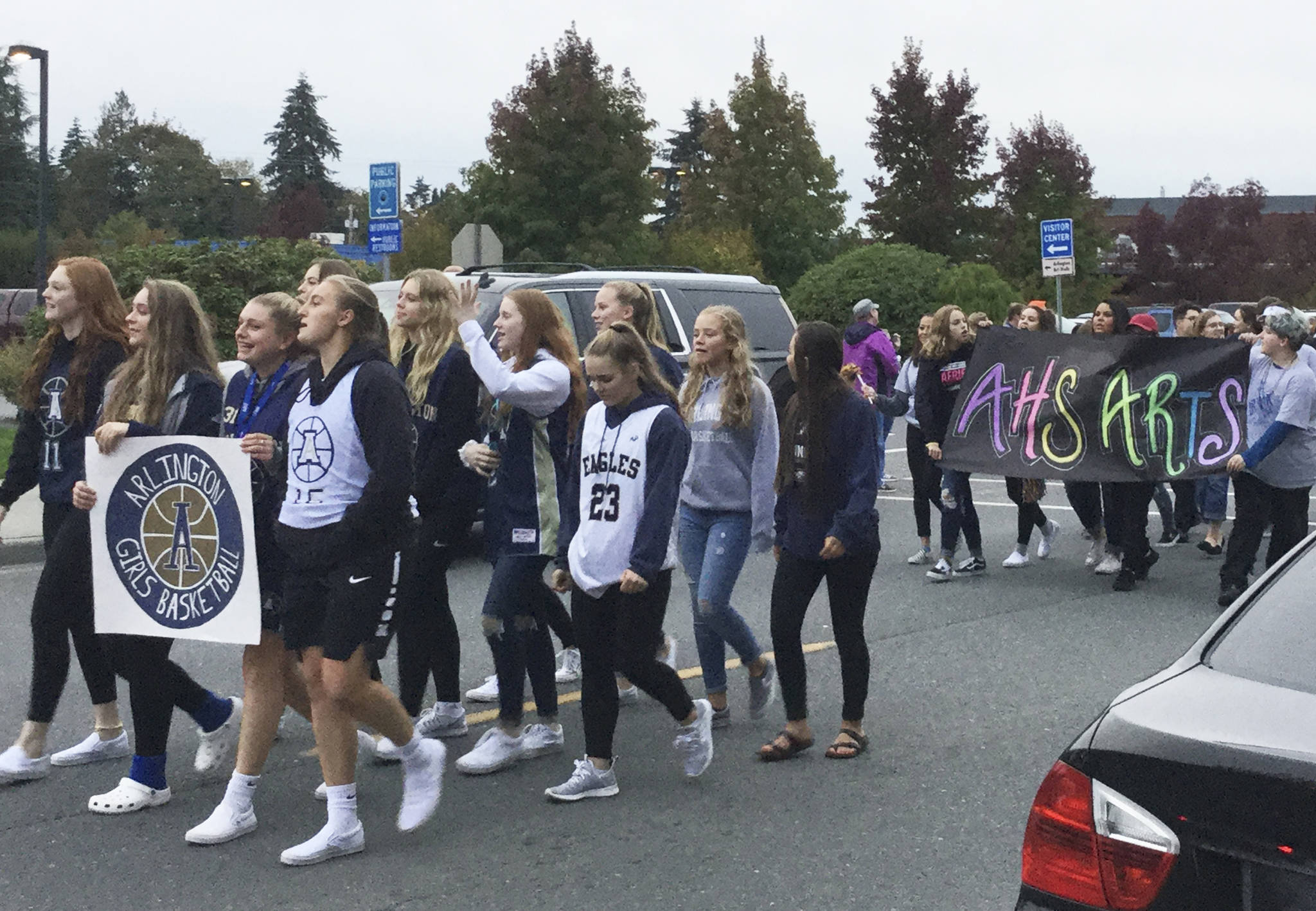 ARLINGTON – It’s Homecoming Week in A-Town, and hundreds of true-blue-and-gold Arlington High School Eagles joined in the traditional homecoming parade along Olympic Avenue Wednesday to share their school spirit with the community, followed by an ice cream social in Legion Park.