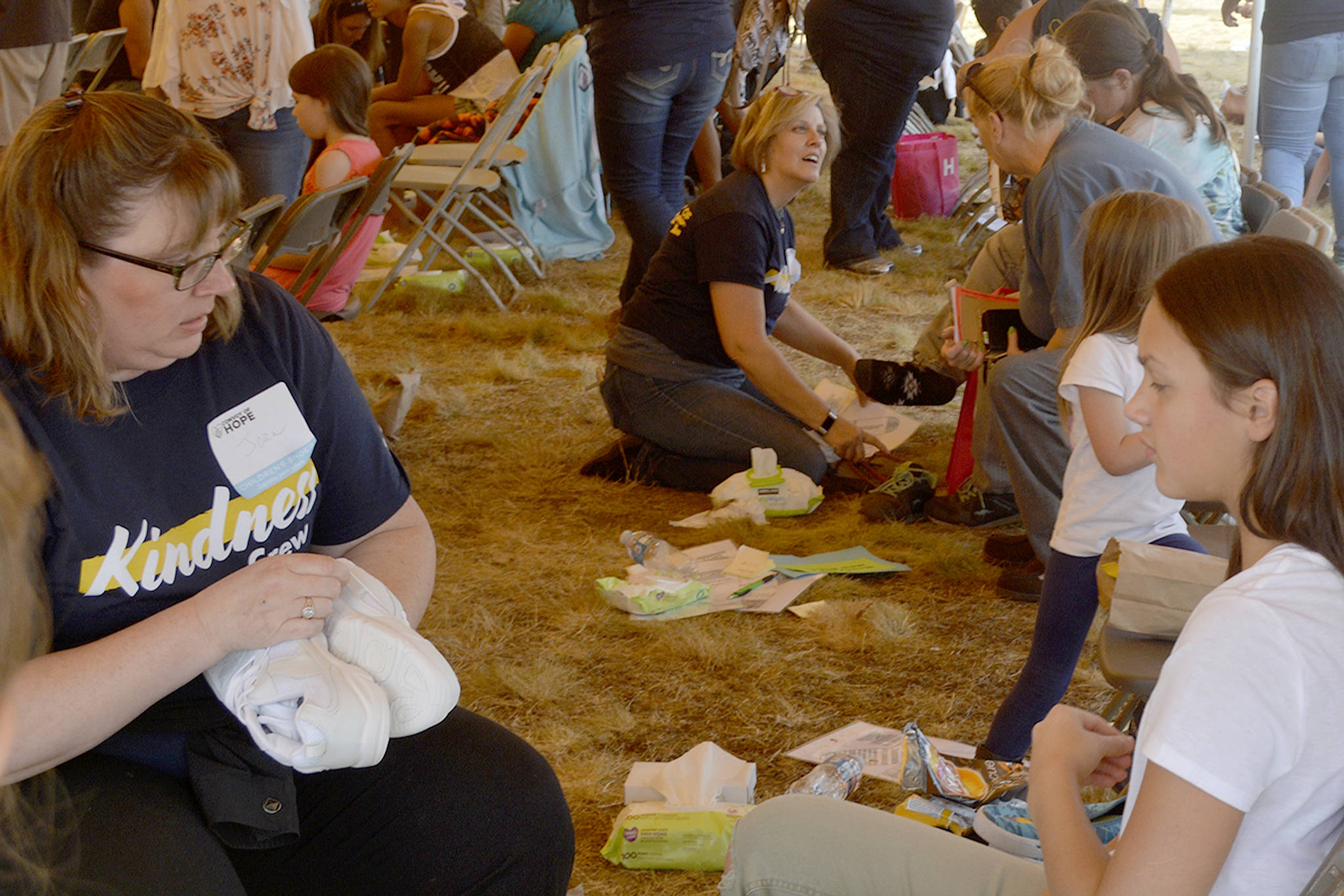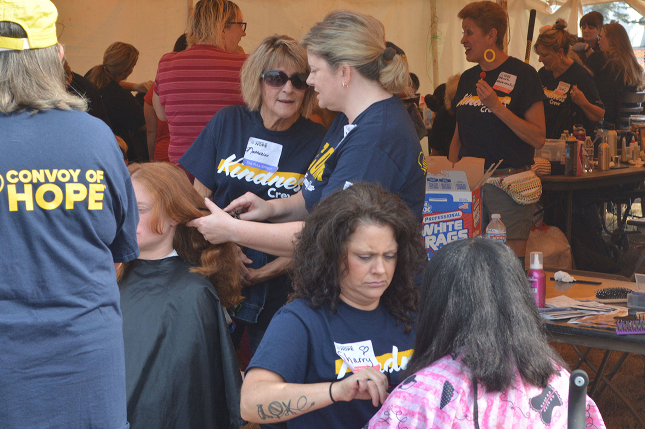 One of the most-popular spots at the event was where 25 people were cutting hair. There was a line much of the day. They did about 150 haircuts in the first three hours. A tent where kids could get shoes also was a big hit.