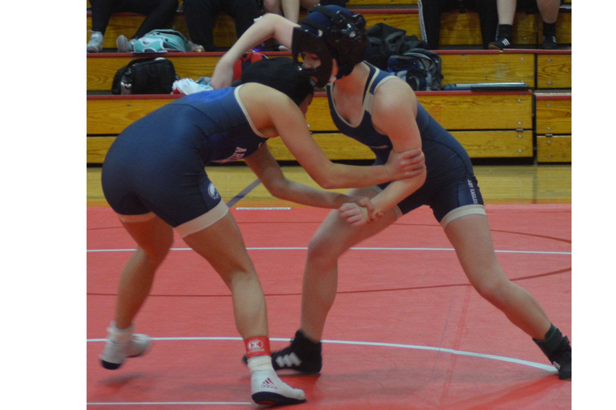At 110 pounds, two Arlington girls battled head to head. Vivian Potong ended up beating fellow Eagle Taylor Chapman 25-10.