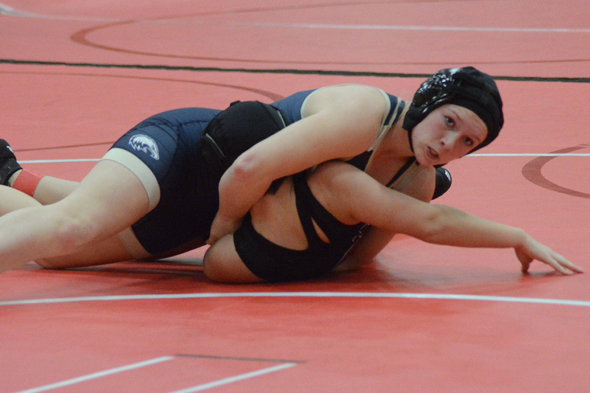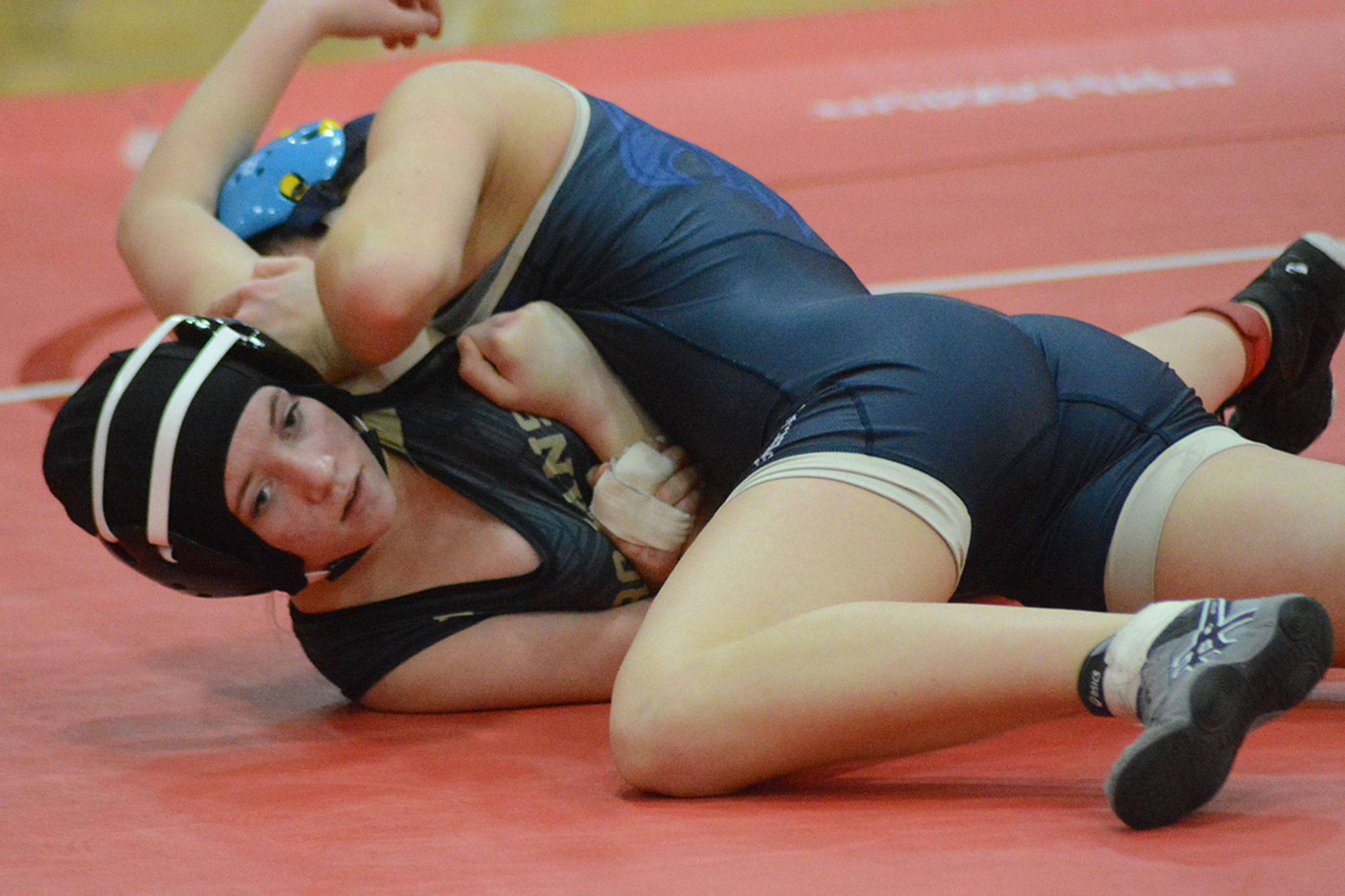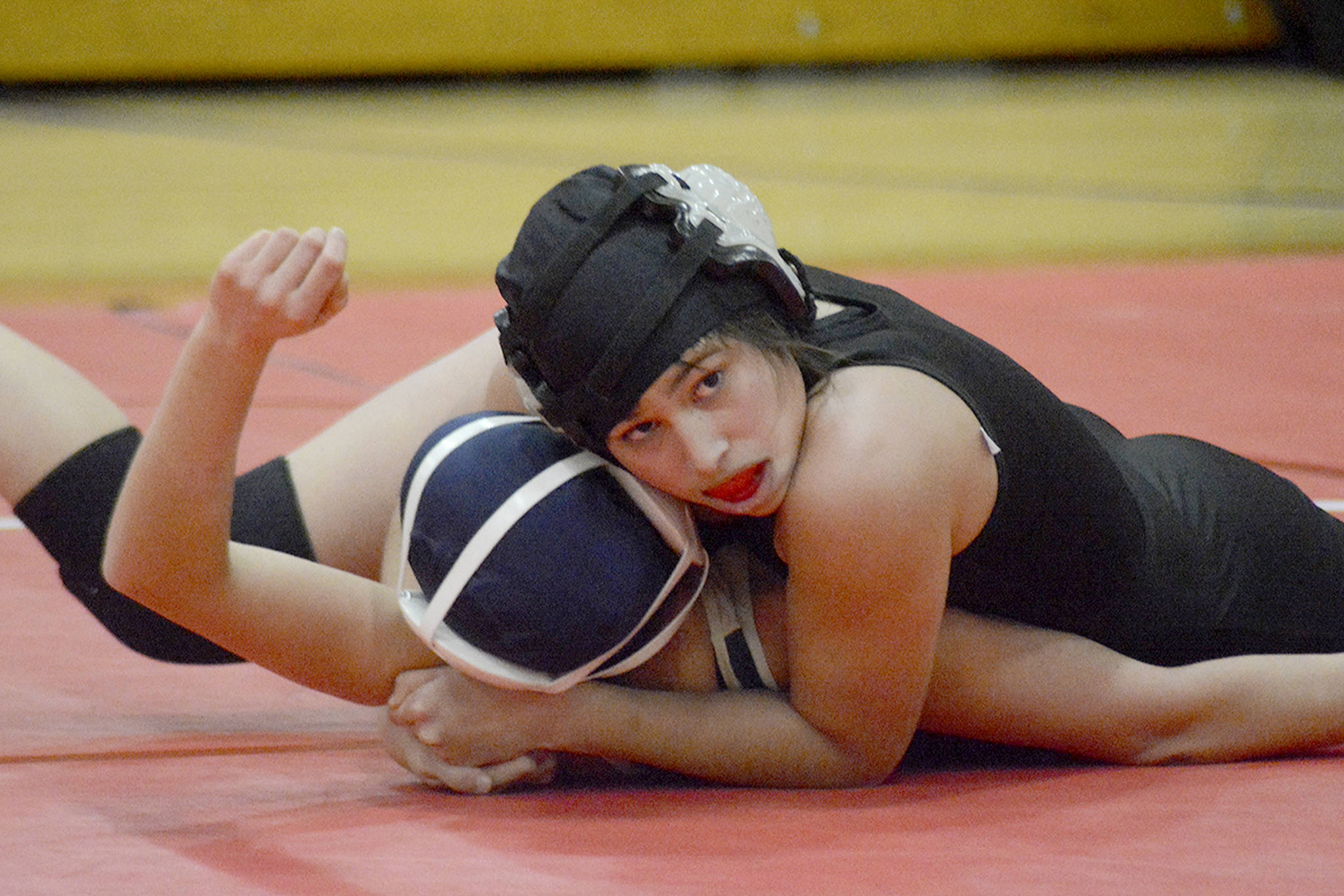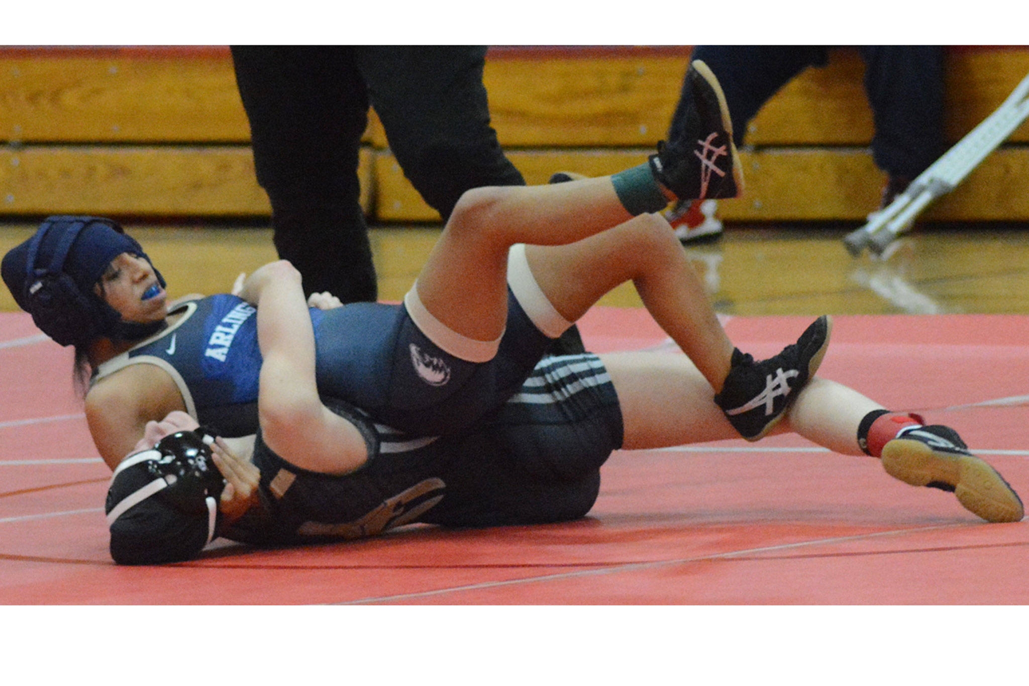 Kylie Hinds of Arlington won her 140-pound match, pinning Marysville-Pilchuck’s Sadie Most.