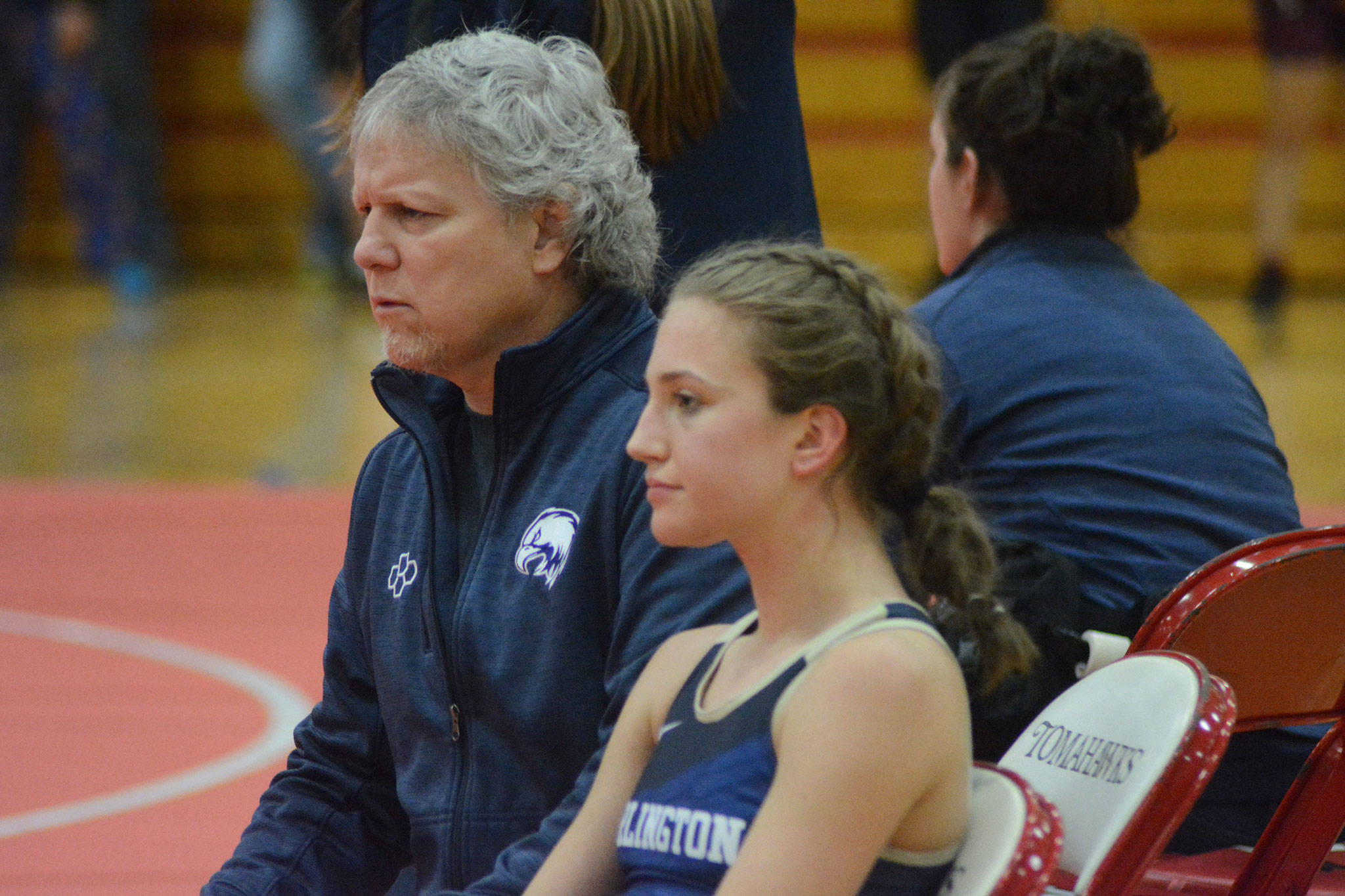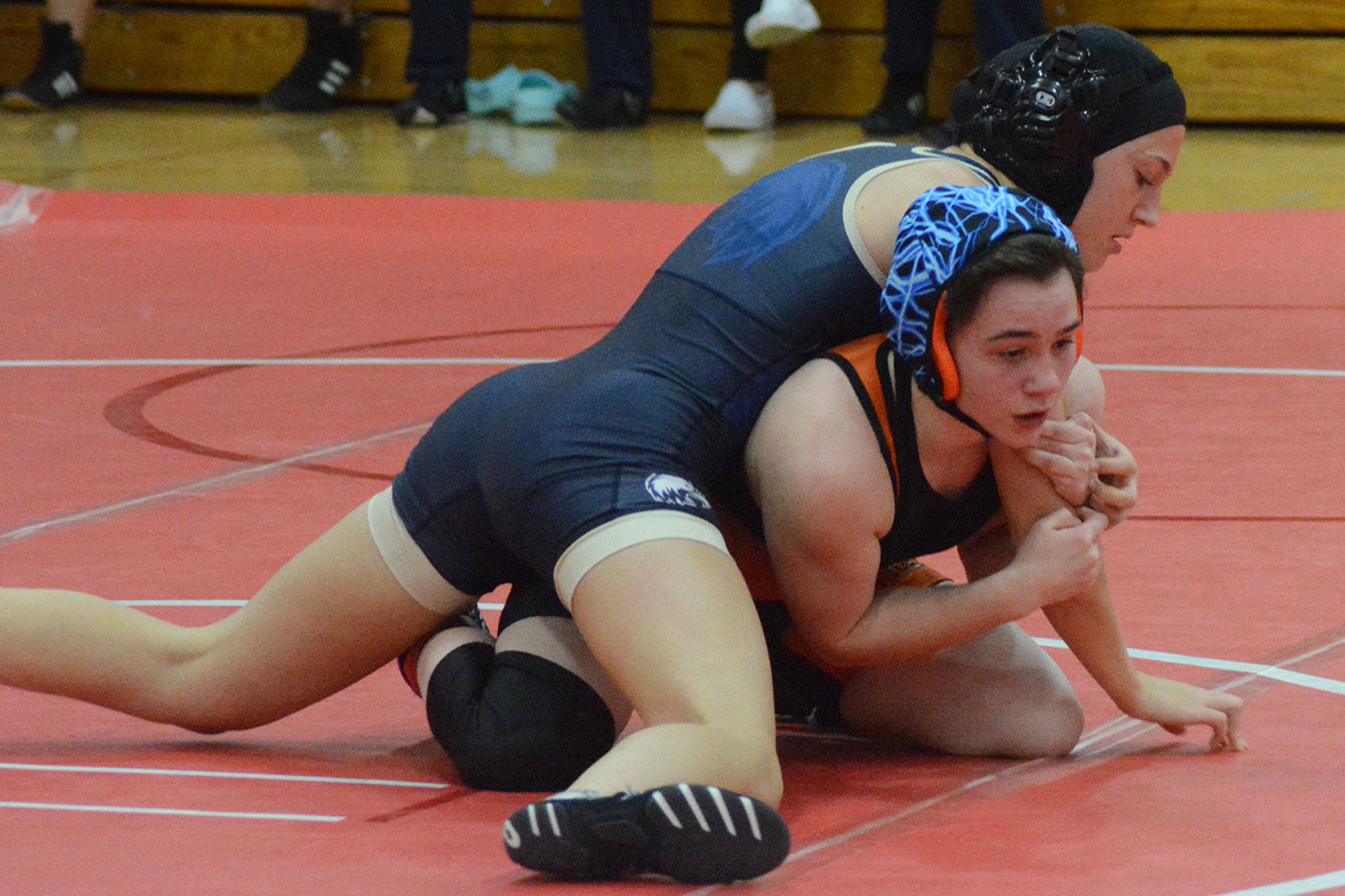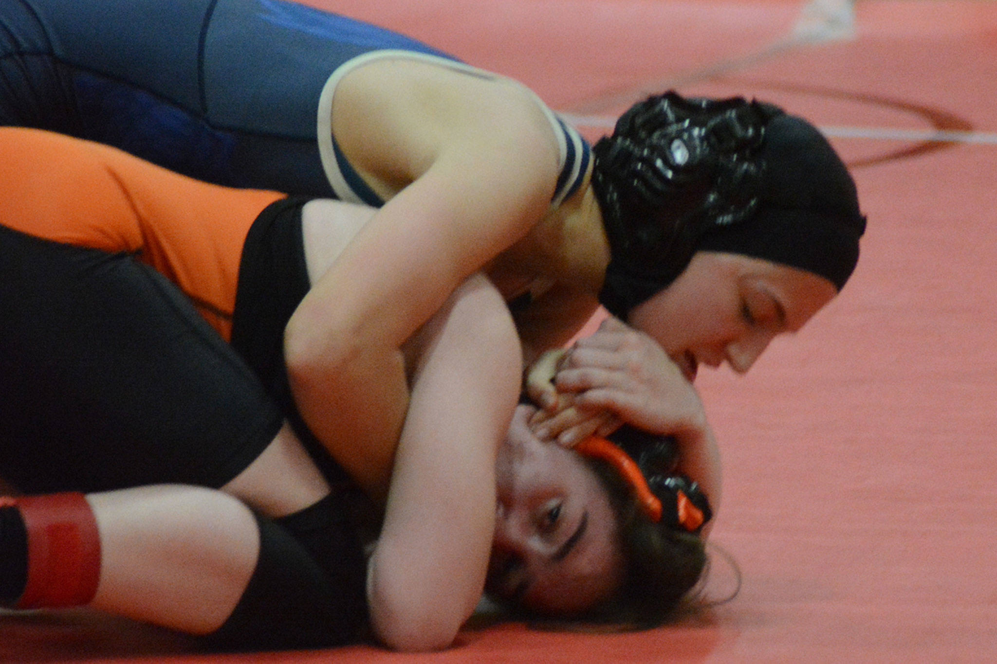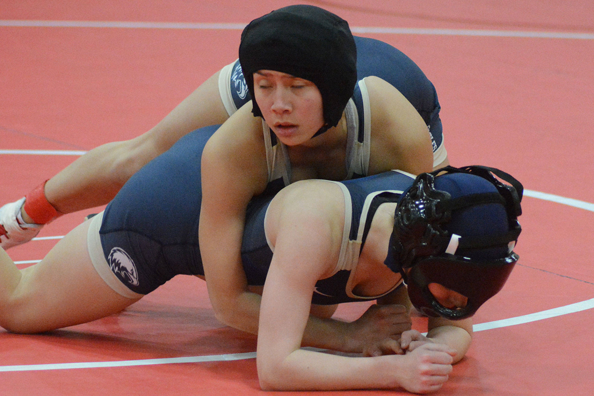 Kylie Hinds of Arlington won her 140-pound match, pinning Marysville-Pilchuck’s Sadie Most.