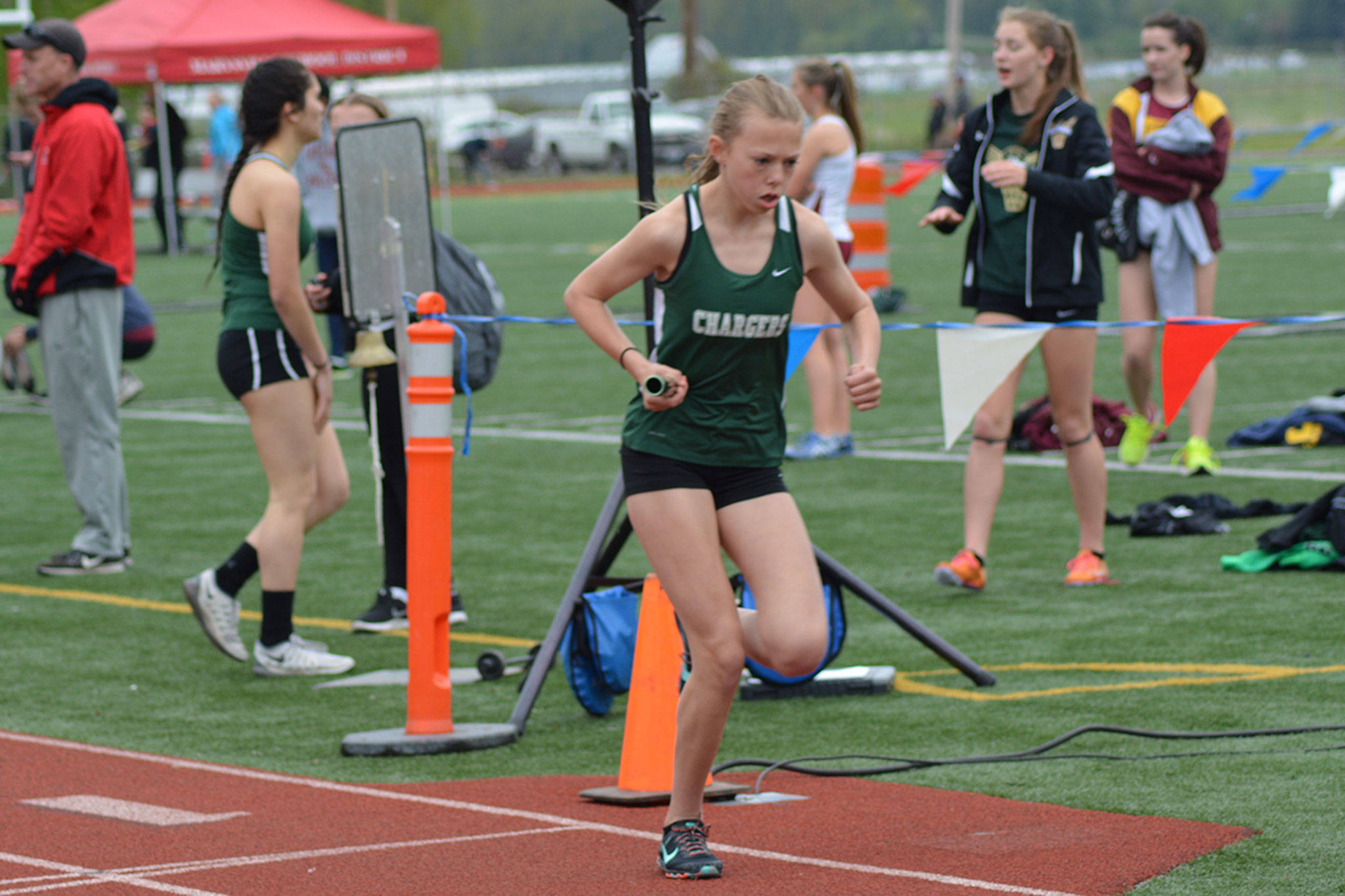In the 800, Gregory Panther hit the tape first in 1:58.61. The Chargers also won the 4×400 relay, with Thomas McCormick, Ryan Hascall, Evan Krautkremer and Panther finishing in 3:36.14.