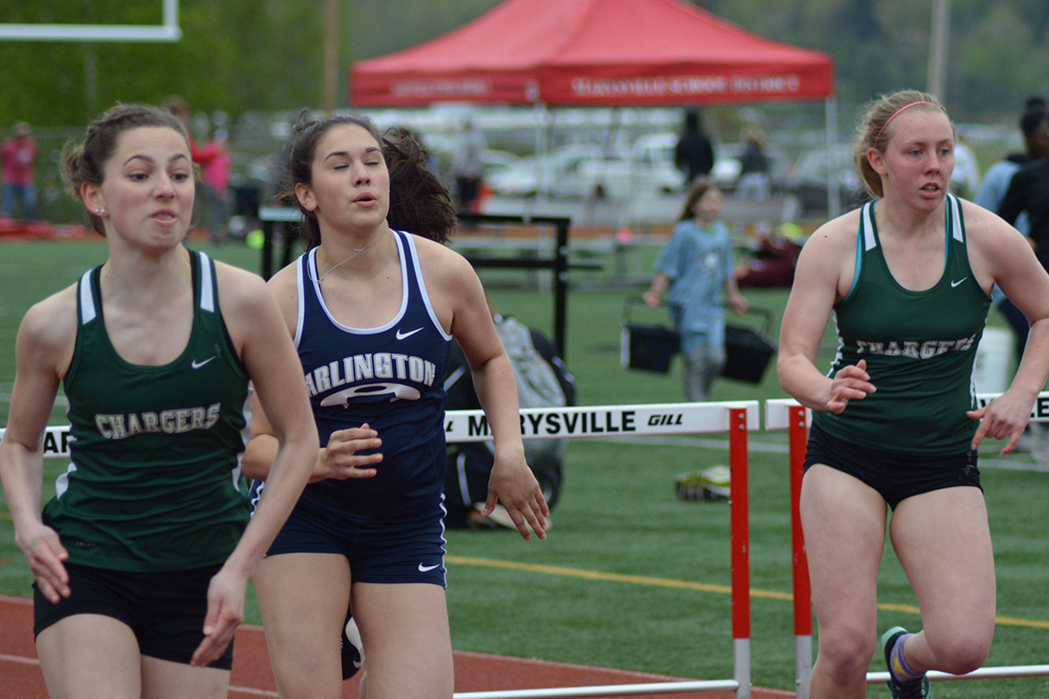 MARYSVILLE – Gabriel Green won three events and teammate Sidney Trinidad two as the Arlington Eagles showed Saturday they are taking off at the right time.