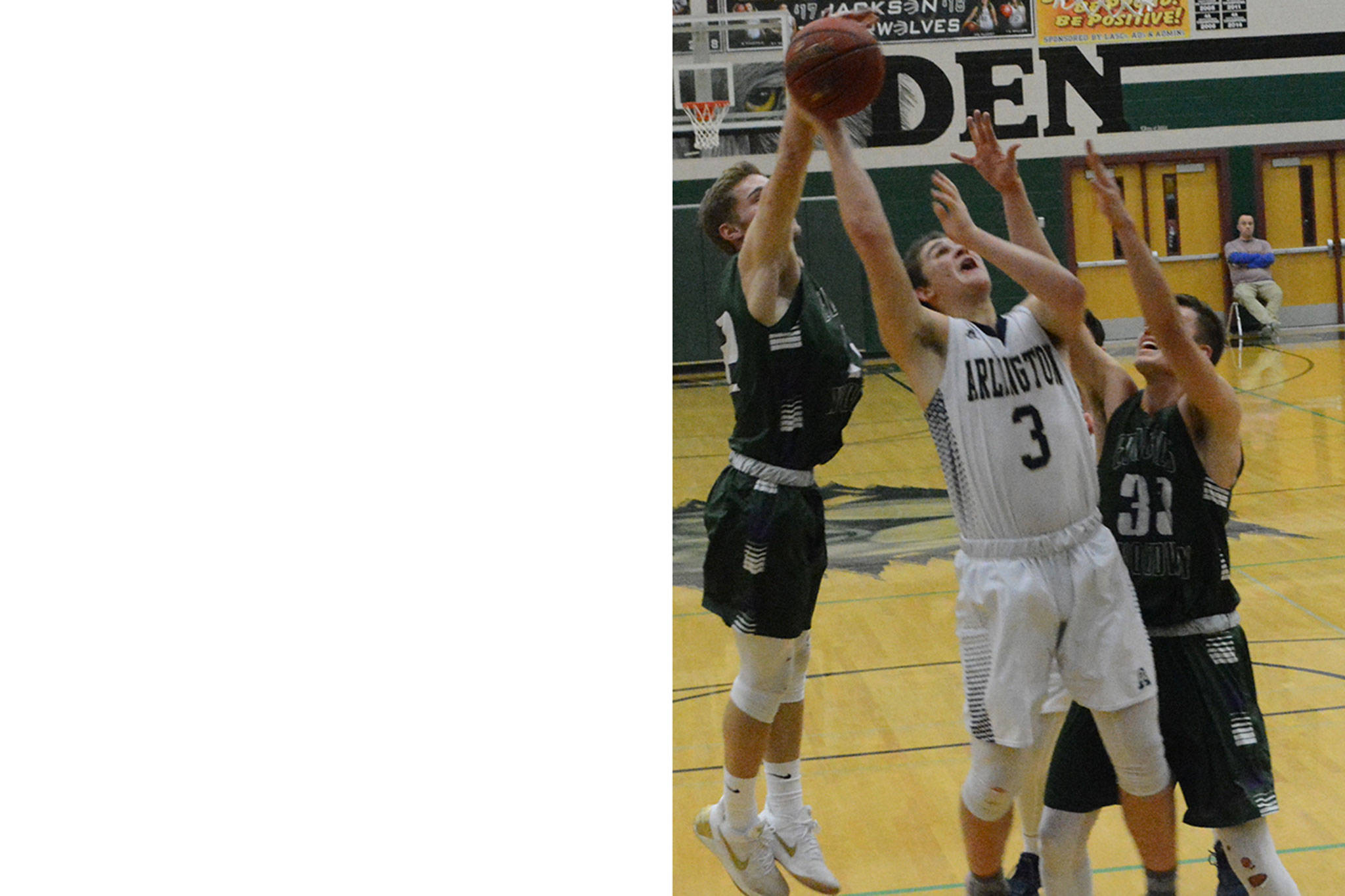 In the game for third place the next day, Arlington beat Shorecrest 64-50. Whitis scored 23 points to lead the way. “We played incredible defense,” Eagles coach Nick Brown said. “Offensively, we moved the ball well. We played with confidence. We’ve been up and down, but that was the good team tonight.” Carey scored 12, Gardoski 11, Aribibola 7, Caden Smith 5, and Gutierrez, Hudson and Max Smith 2 apiece.