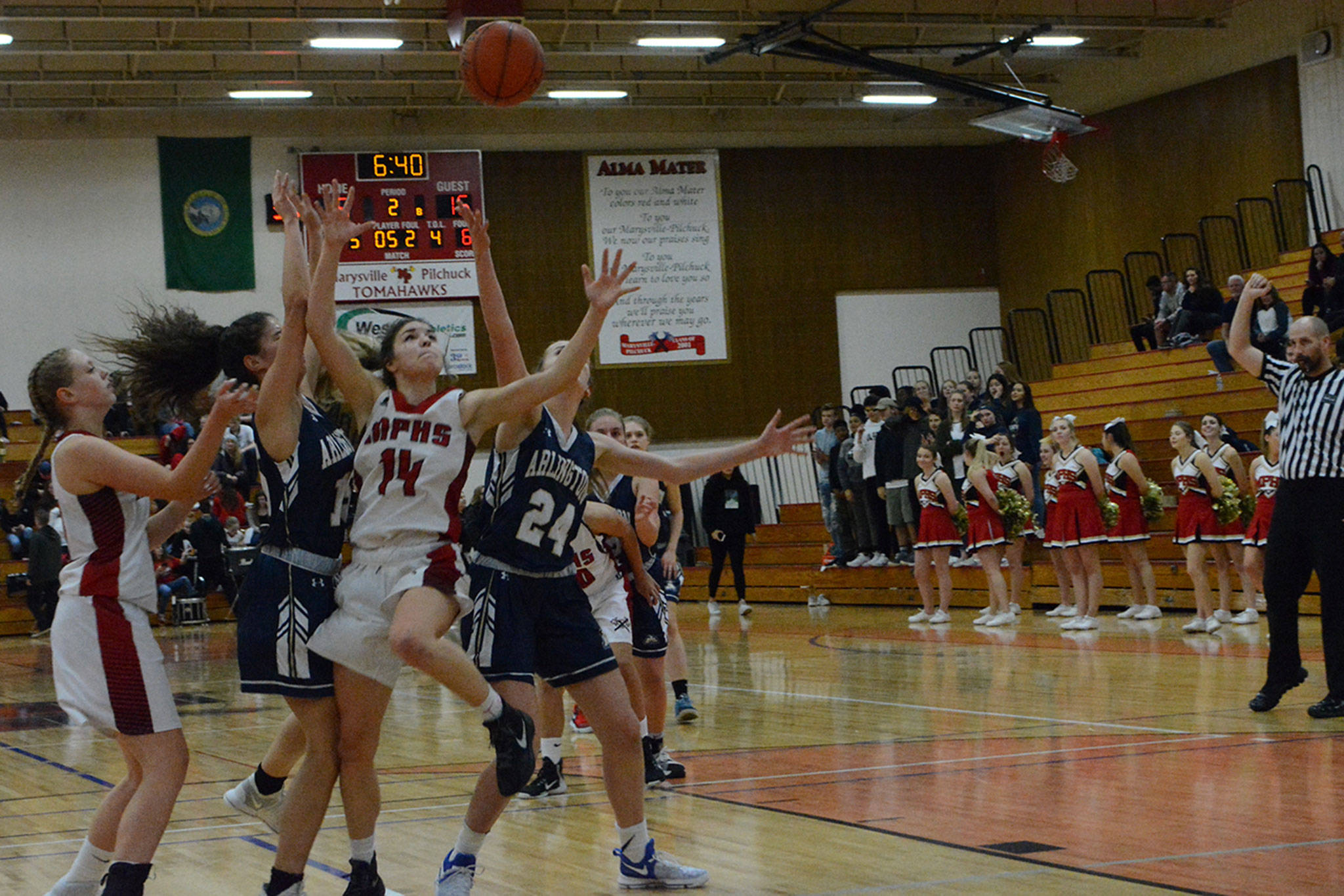 The Arlington Eagle girls have won six of their last eight games, defeating Marysville-Pilchuck 65-14 Wednesday night.