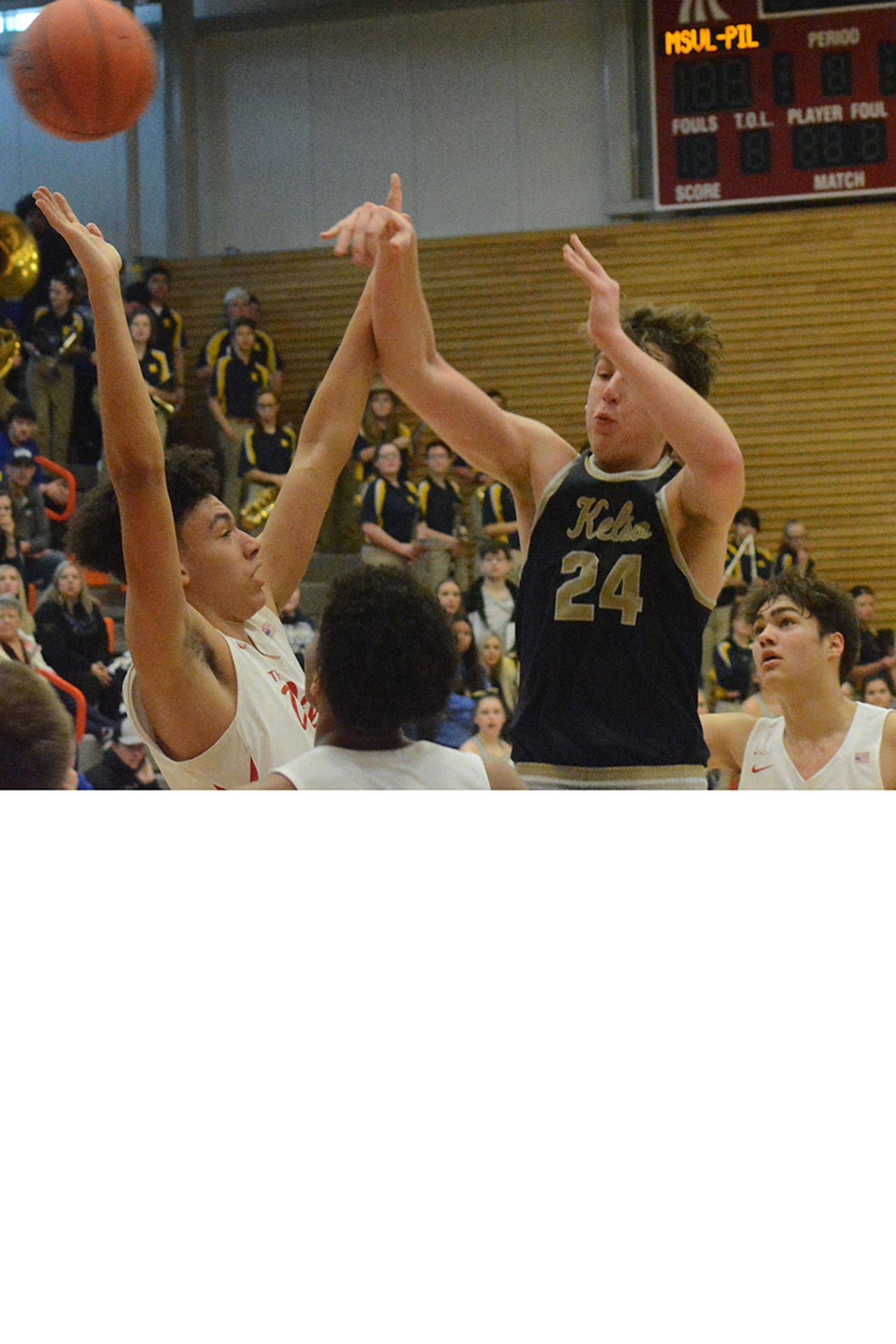 Dobler hit a bucket and another 3 to start the second period as M-P built a 34-13 lead when Phelps knocked down a 3. Kelso star Shaw Anderson, who is headed to Seattle Pacific next year, scored two 3-point plays to get the Hilanders to within 12. But Dobler connected on four three throws to make it 40-22 at the half. Dobler already had 20 points by halftime, while Anderson led Kelso with 13 of his 22 points.