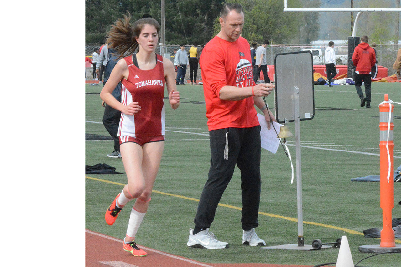 For the M-P girls, top finishers were: M-P swept the 100 with freshmen Jaylynn LeMasters first in 13.08 seconds, Cadence Jackson second and sophomore Corianne Cross third; LeMasters won the 200 with sophomore Tahja Vaivaimuli third; junior Alexia Sandoval easily won the 800 in 2:34.24; Julia Davis was second in the 3200; freshman Devon Keator was second in the 100 hurdles; M-P won the 4 by 100 relay in 53.22 seconds with LeMasters, Summer Sanden, Jackson and Vaivaimuli; Miriah Summers won the shot put at 33 feet, 5 inches; she also won the discus at 96-0, with junior Jenna Olson third; Vaivaimuli was second and freshman Alanna Fort third in the javelin; M-P swept the high jump with Sanden first at 4-10; Hannah Wagner second and Davis third; and Cross won the pole vault at 10 feet with Sanden third.