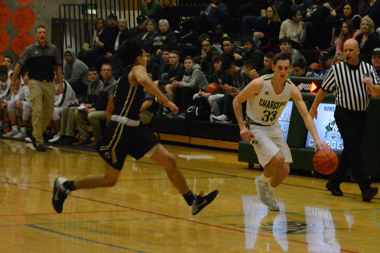 Showatter came off the bench with 4:22 left in the half, hit two free throws, a 3 and later drove to the hoop for a bucket to help give the home team the lead after trailing 19-18. The visitors didn’t score for about three minutes on that run as the Chargers went up 29-19 with 2:34 left in the half. Sophomore Cameron Stordahl hit a bucket and scored again on a cross-court assist from sophomore Ethan Jackson, Knight scored on a put-back after grabbing an offensive board and scored again after a steal, and Stordahl tossed almost a full-court pass to Knight for another basket after breaking the Royals’ press.