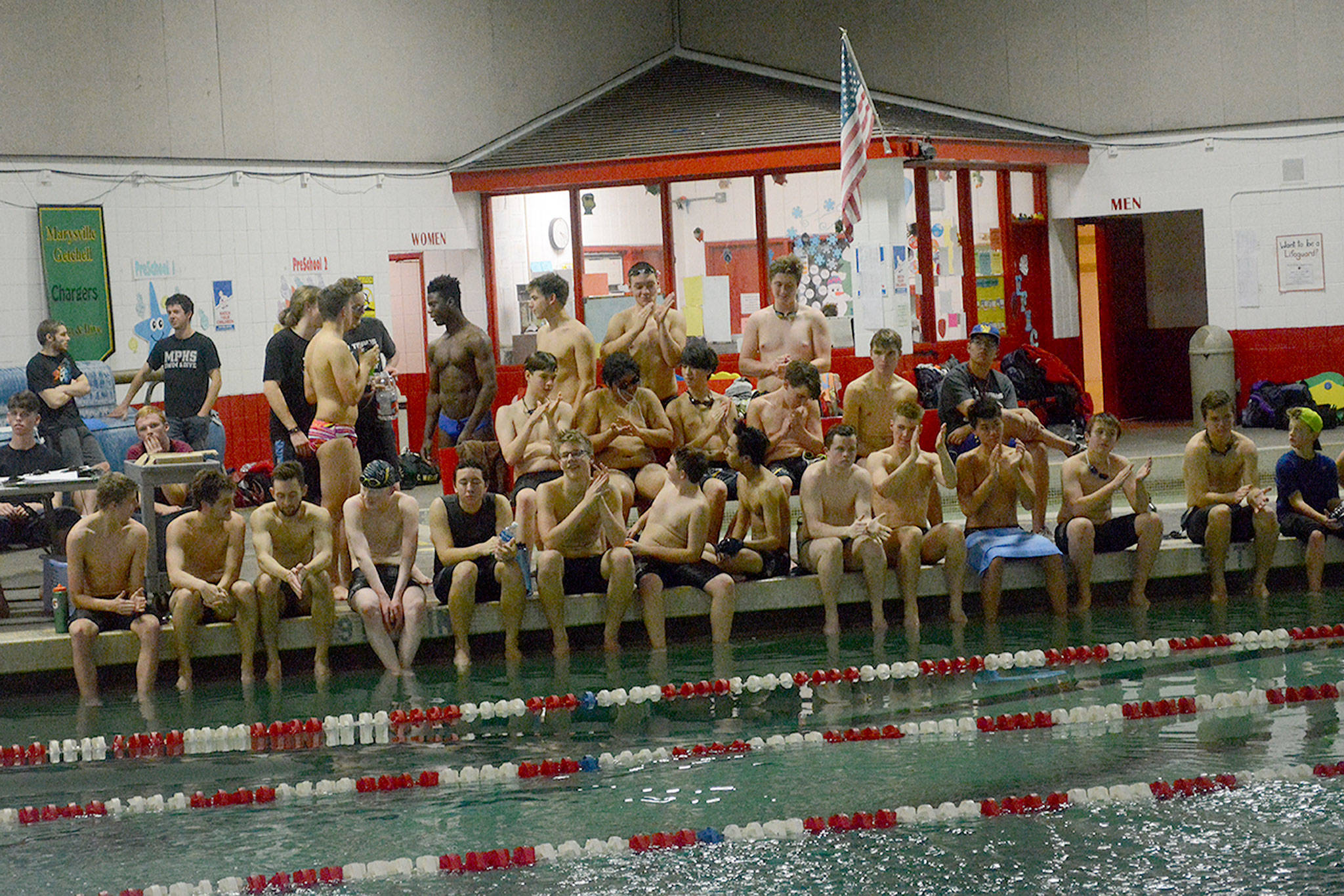 MARYSVILLE – The combined Marysville-Pilchuck and Marysville Getchell high school boys swim teams hosted a powerful Lake Stevens squad Thursday night.