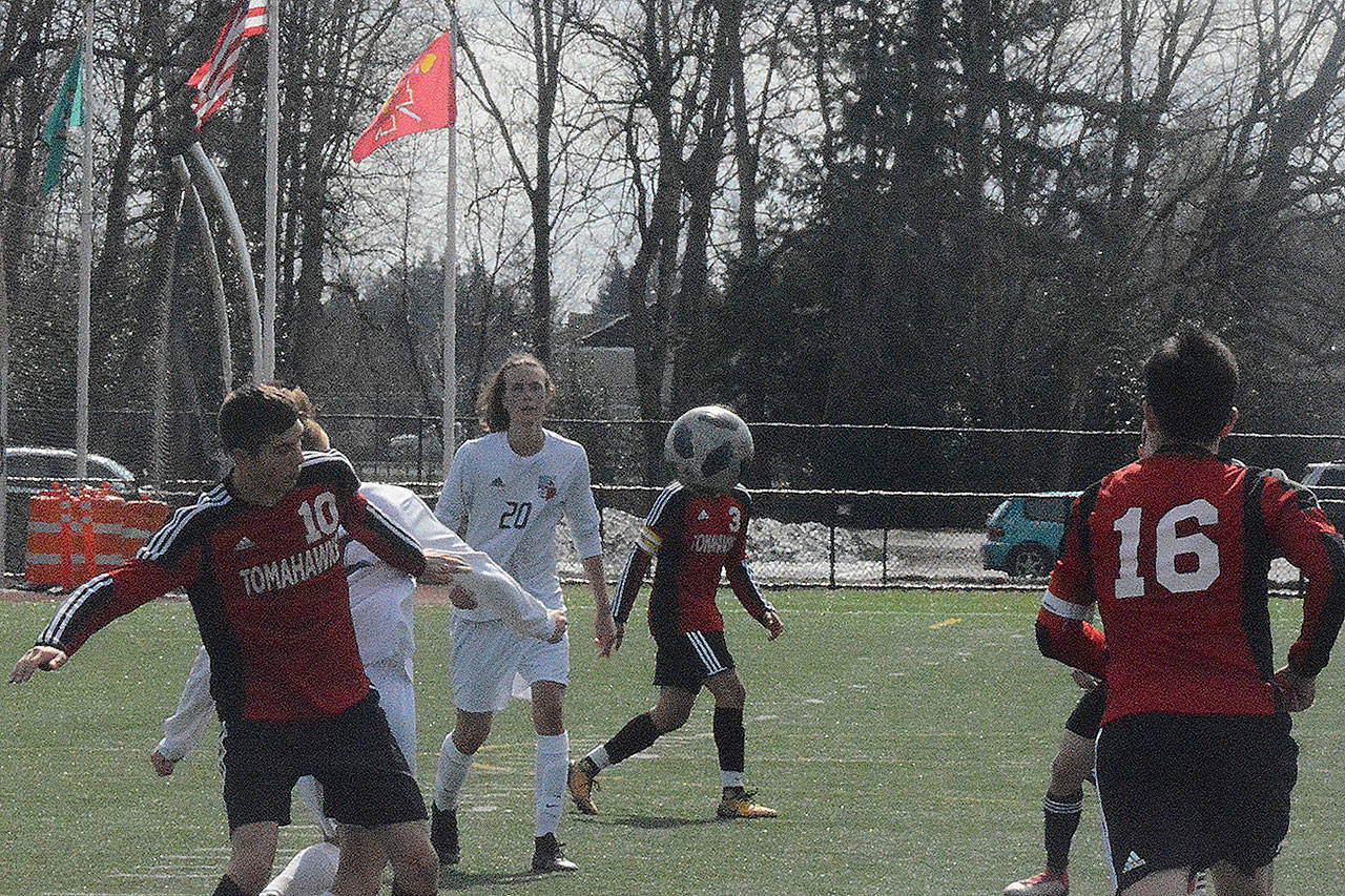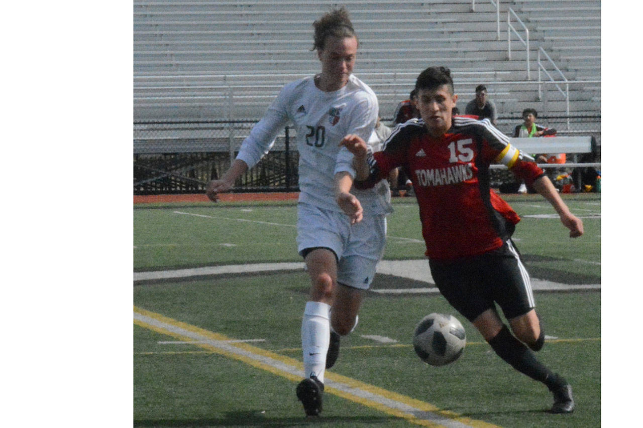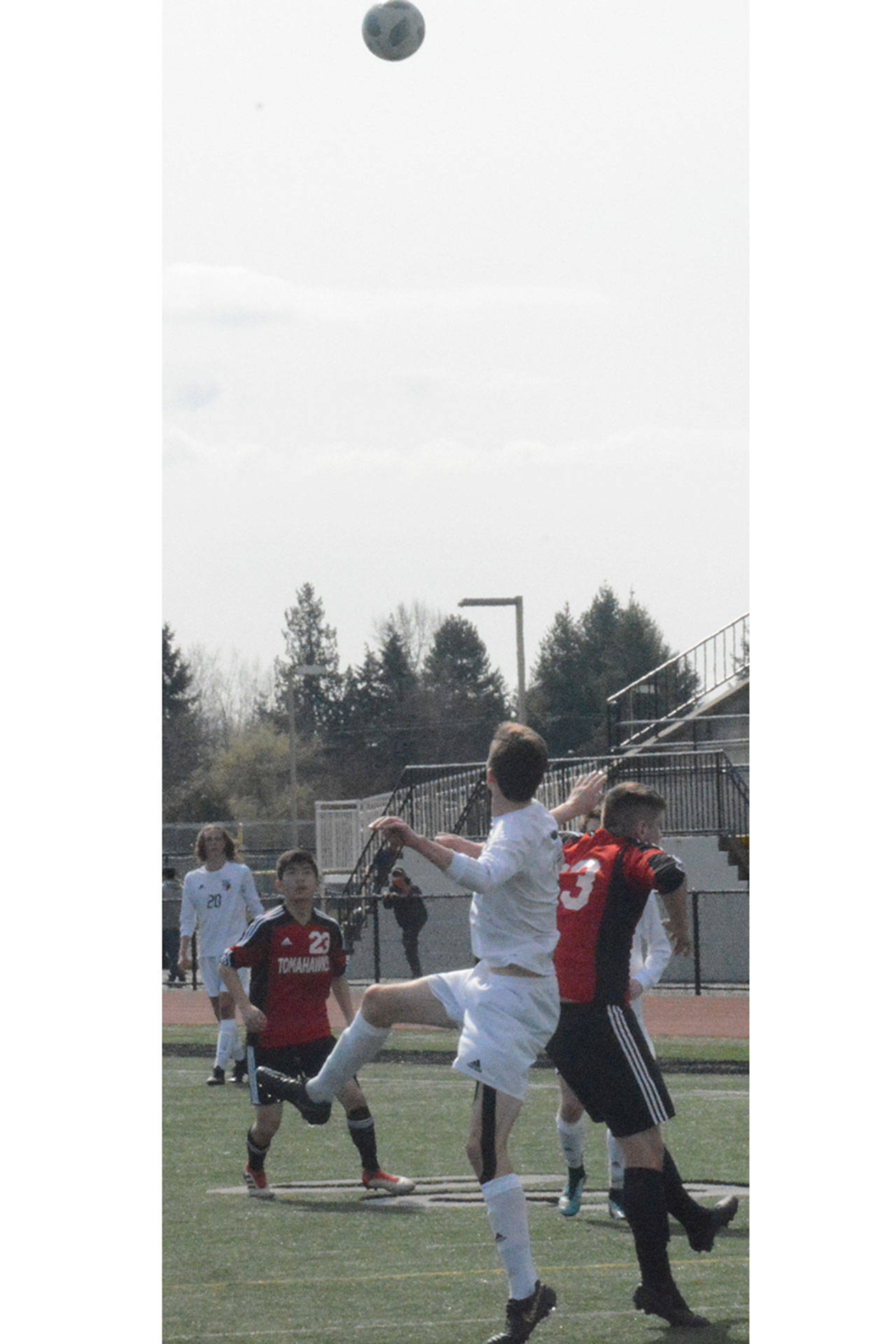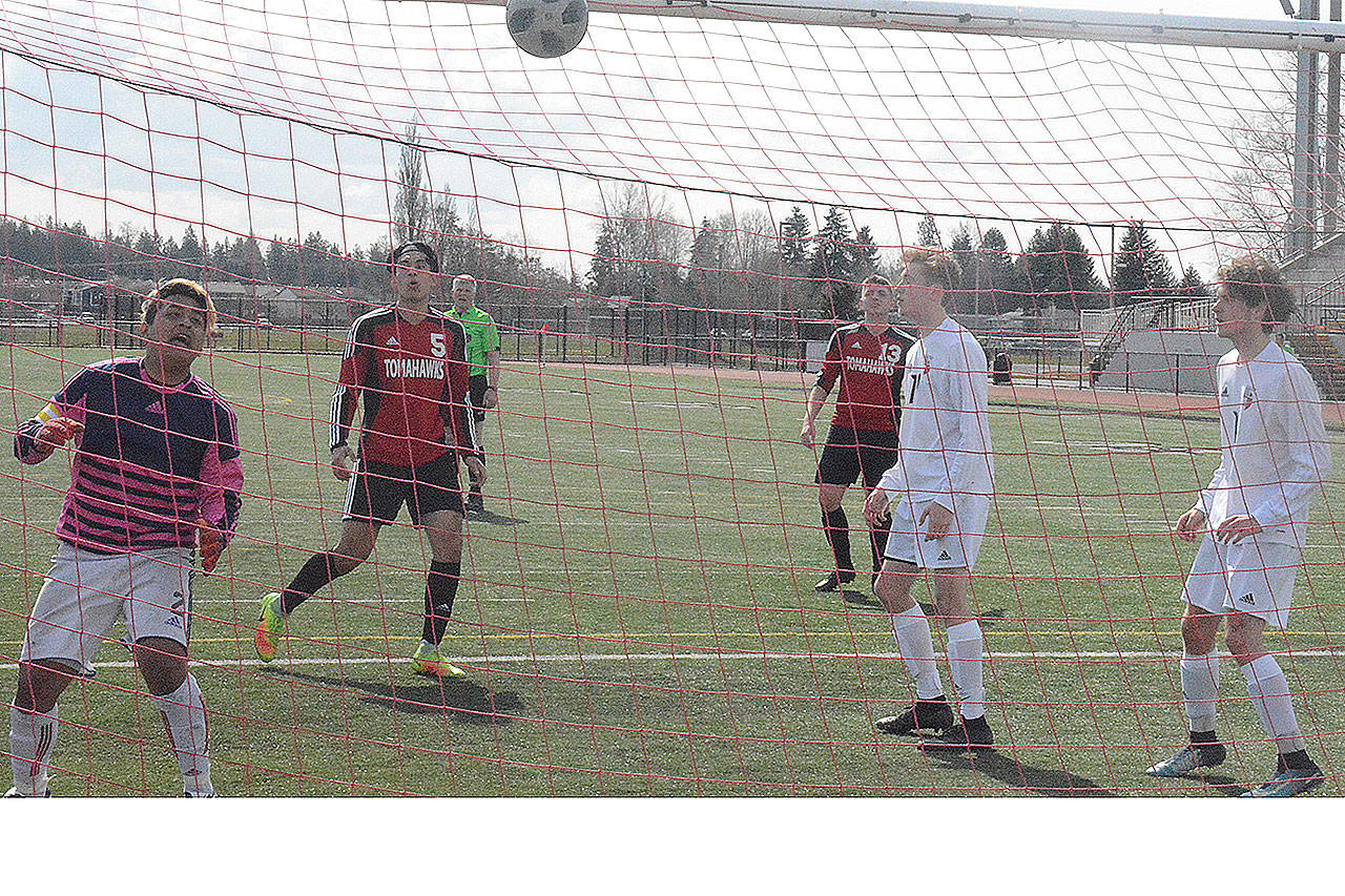 Snohomish scored first, but only one minute later M-P junior Douglas Cruz-Young launched a deep free kick from about 45 yards out. The ball bounced once inside the 18-yard box and then hit off the crossbar, ricocheting back in front of the net. Off the rebound, senior forward Kyle Matson slotted home the deflection to give the Tomahawks a ninth-minute equalizer.