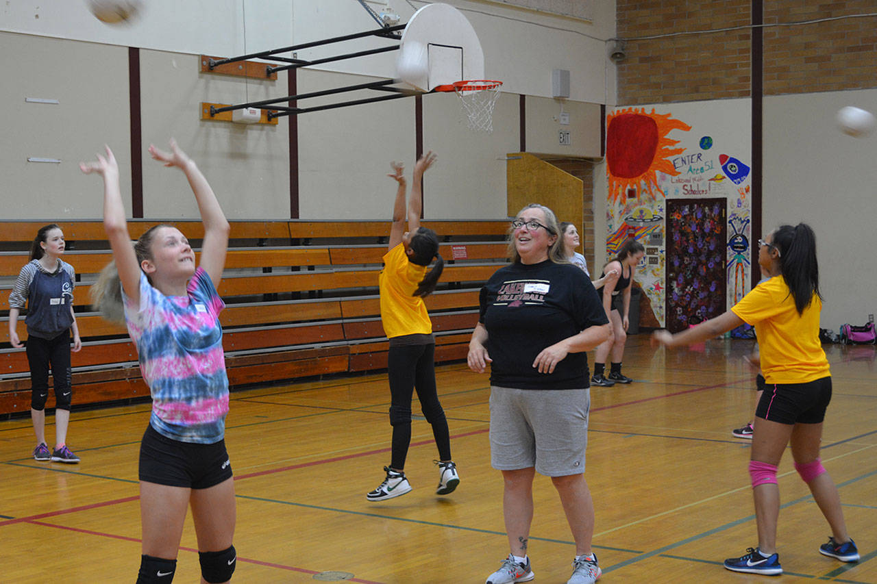 But since she hasn’t been replaced yet, she’s still coaching the youth volleyball camp that has been going on at LHS for about eight years now.
