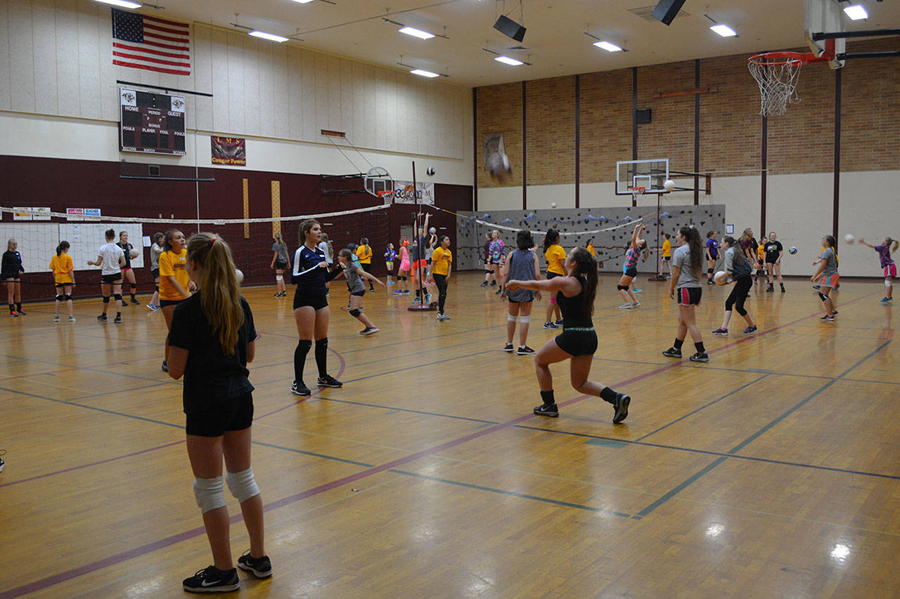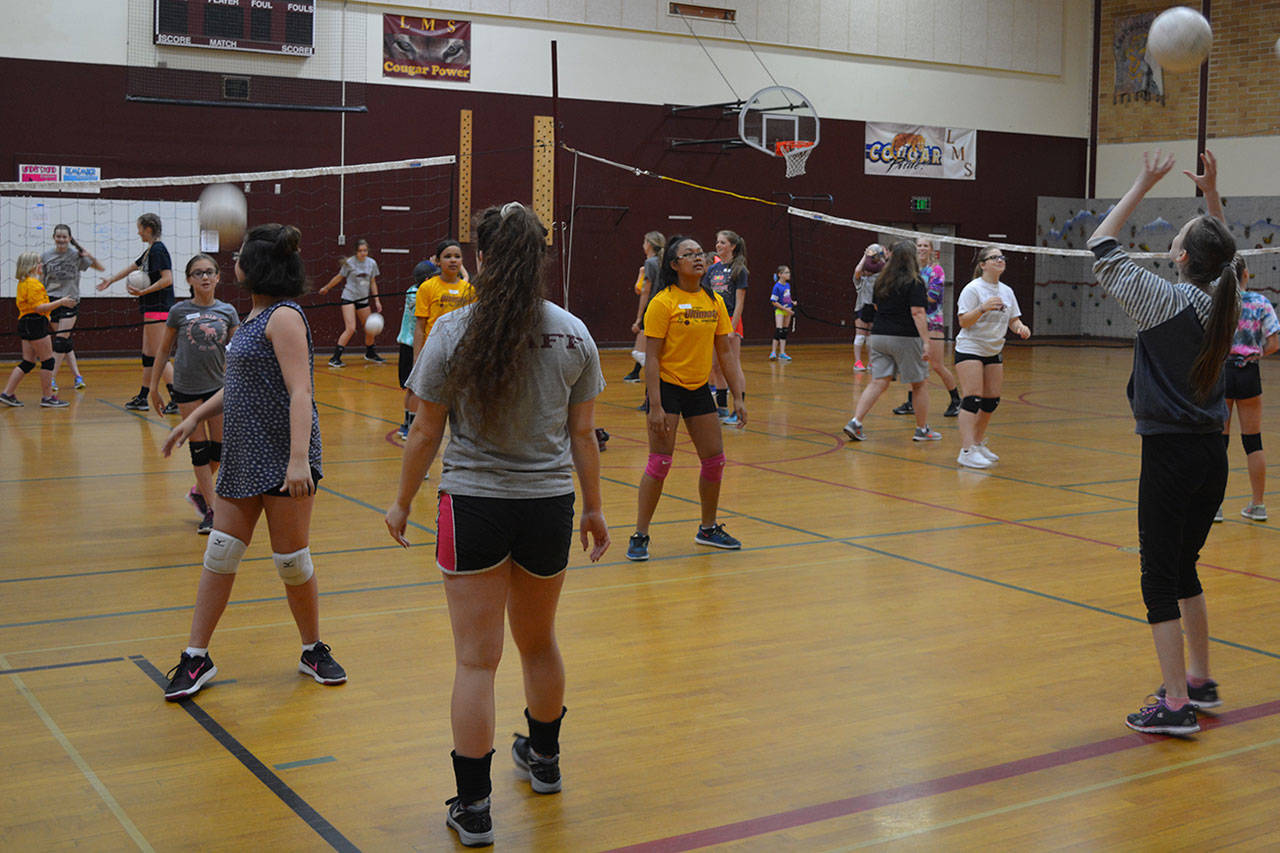 About 31 participants, including two boys, ages 8-14 are part of the city of Marysville’s camp this week. LHS hosts it as a fund-raiser for the team, so many Cougar players are helping out, including three seniors who recently graduated.